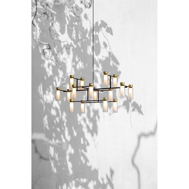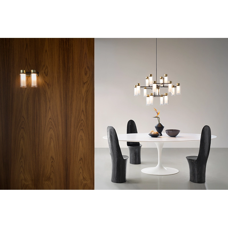 Tooy présente Osman, une collection de luminaires au design rationnel qui se distingue par des détails en laiton brossé de grande qualité et des abat-jours cylindriques créant une diffusion lumineuse à la fois envoûtante et chaleureuse.  La suspension Osman 560.41, tout comme l'ensemble de la collection Osman, se démarque par sa structure distinctive et ses proportions minutieusement équilibrées, offrant une esthétique à la fois moderne et élégante. La suspension Osman 560.12 crée une ambiance accueillante dans votre espace, transcendant ainsi son rôle de simple source de lumière pour devenir une véritable œuvre d'art fonctionnelle. Elle métamorphose votre environnement en un lieu où la beauté et la fonctionnalité s'entrelacent harmonieusement, ajoutant une dimension artistique à votre intérieur.