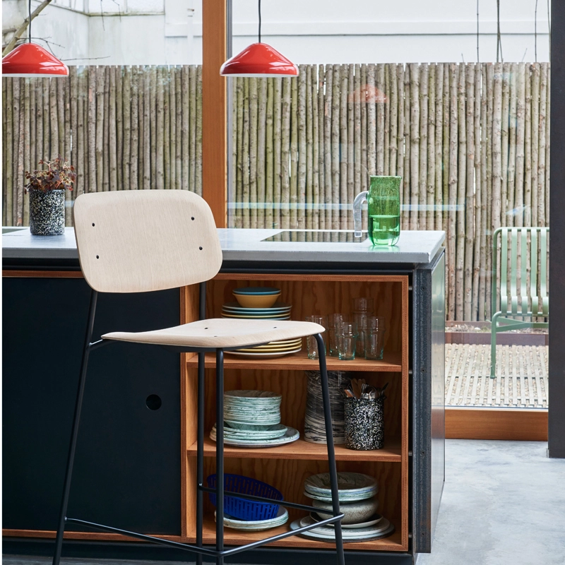 La collection de lampes Pao est une collaboration entre le designer japonais renommé Naoto Fukasawa et la marque Hay. Inspiré par la forme douce et éclatante des tentes traditionnelles mongoles Pao illuminées la nuit, Fukasawa a décidé d'incorporer la même chaleur atmosphérique et la même convivialité dans ses suspensions en acier. Pao représente parfaitement l’esthétique et le travail de Fukasawa : créer un objet de tous les jours qui s'inspire des valeurs de design existant dans le monde naturel. En gardant l'esthétique modeste et simple, il met le design en harmonie avec son environnement, renforçant son intention première de rendre l'atmosphère agréable et confortable. Grâce au développement de la dernière technologie d'ampoule LED, la source de lumière peut être dissimulée à la vue dans l'abat-jour, qui est fermé avec un diffuseur en acrylique (PMMA) de haute qualité. L'abat-jour de la suspension Pao est fabriqué en acier avec une finition brillante, disponible en différentes tailles et couleurs. Sa fonctionnalité et sa simplicité délibérée de conception le rendent adapté à un large éventail d'espaces et d'utilisations dans des environnements domestiques et d'entreprise.