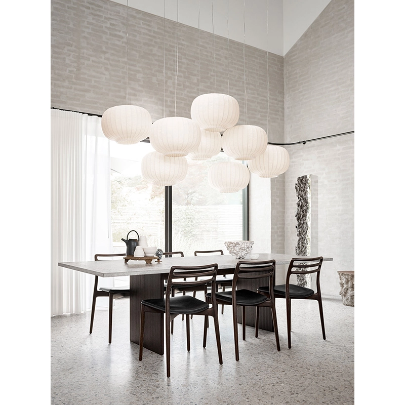 La suspension Paper Vipp est parfaite pour la salle à manger. Cette suspension est dotée d’un abat-jour en papier texturé et d’une grille métallique intérieure. Diffusant harmonieusement la lumière, le papier est fixé à un anneau supérieur en chêne foncé. Soutenue par un fil réglable et un câble transparent, la suspension Paper Vipp trouve idéalement sa place au-dessus d’une table à manger. Inspirée par la tradition japonaise de la lanterne en papier, ce luminaire Vipp mêle subtilement l’artisanat du design asiatique et un éclairage cosy et tamisé inspiré du décor scandinave. Soutenue par un fil d’acier fin et un câble transparent, la suspension Paper Vipp donne une impression de légèreté et de flottement. La grille métallique intérieure et l’anneau supérieur en chêne massif ajoutent force et stabilité à la construction délicate de la lampe. La création de chaque feuille de papier utilisée pour la lampe en papier Vipp repose sur des méthodes artisanales ancestrales de fabrication du papier. Le procédé manuel y ajoute une dimension poétique, chaque abat-jour renfermant sa propre histoire et sa propre texture distinctive.