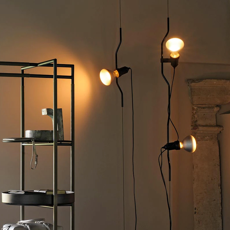 Parentesi est une suspension créée en 1971 par Achille Castiglioni et Pio Manzu pour la célèbre marque de luminaires Flos. La partie éclairante se déplace verticalement sur un filin en acier qui est tendu entre le plafond et le sol. Elle figure aujourd'hui parmi les classiques du design qui ont révolutionné le luminaire et a été récompensée par le prestigieux prix Compasso d'Oro en 1979. Parentesi offre une touche de poésie dans votre salon ou crée une ambiance dans l'entrée en diffusant une lumière douce et chaleureuse.