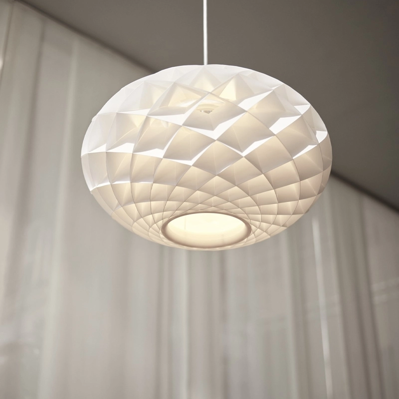 Conçue par Øivind Slaatto pour Louis Poulsen, la suspension Patera est une réinterprétation moderne du lustre classique, fournissant un éclairage dynamique et doux dans les espaces contemporains. L’éclairage anti-éblouissant à 360 degrés de Patera est le résultat d’un design complexe. Sa forme est belle à regarder quel que soit l’angle de vue, sa structure basée sur la suite de Fibonacci offrant une impression différente selon le point d’observation. À la fois sophistiquée et audacieuse, Patera crée la même magie que l’on peut ressentir en observant un ciel étoilé.