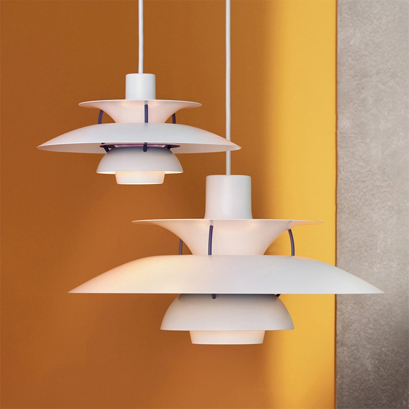 Dessinée en 1958 par Poul Henningsen pour Louis Poulsen, la suspension PH 5 tient son nom du diamètre de 50 cm de l’abat-jour principal du luminaire. À l’époque de sa création, personne ne se doutait que PH 5 finirait par incarner l’éclairage caractéristique de Poul Henningsen. La suspension se distingue par son éclairage 100 % anti-éblouissant, indépendamment de la source lumineuse employée et de la manière dont la lampe est installée. La suspension émet une lumière dirigée vers le bas et vers les côtés et s’éclaire donc elle-même. Intemporelle, PH 5 continue d'égayer les intérieurs les plus modernes grâce à sa palette de couleurs, tout comme PH 5 Mini. Cette suspension lancée en 2017 possède un abat-jour supérieur de 30 centimètres suivant les principes de Poul Henningsen. Ce premier redimensionnement de la célèbre suspension s’inscrit dans la volonté de Louis Poulsen d’accompagner la vie contemporaine et créative.