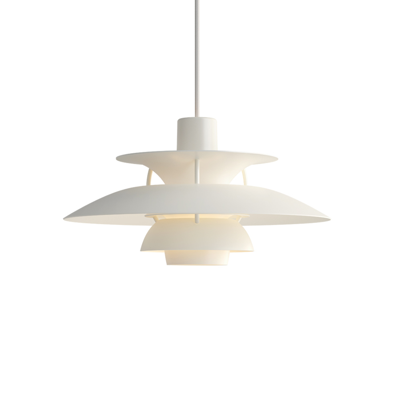 Dessinée en 1958 par Poul Henningsen pour Louis Poulsen, la suspension PH 5 tient son nom du diamètre de 50 cm de l’abat-jour principal du luminaire. À l’époque de sa création, personne ne se doutait que PH 5 finirait par incarner l’éclairage caractéristique de Poul Henningsen. La suspension se distingue par son éclairage 100 % anti-éblouissant, indépendamment de la source lumineuse employée et de la manière dont la lampe est installée. La suspension émet une lumière dirigée vers le bas et vers les côtés et s’éclaire donc elle-même. Intemporelle, PH 5 continue d'égayer les intérieurs les plus modernes grâce à sa palette de couleurs, tout comme PH 5 Mini. Cette suspension lancée en 2017 possède un abat-jour supérieur de 30 centimètres suivant les principes de Poul Henningsen. Ce premier redimensionnement de la célèbre suspension s’inscrit dans la volonté de Louis Poulsen d’accompagner la vie contemporaine et créative.