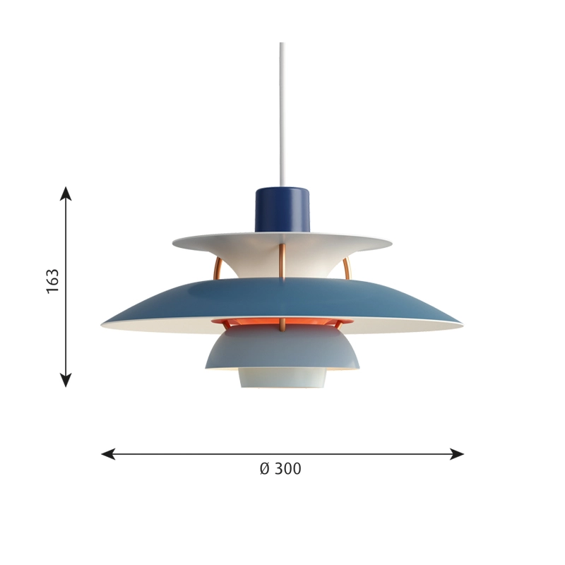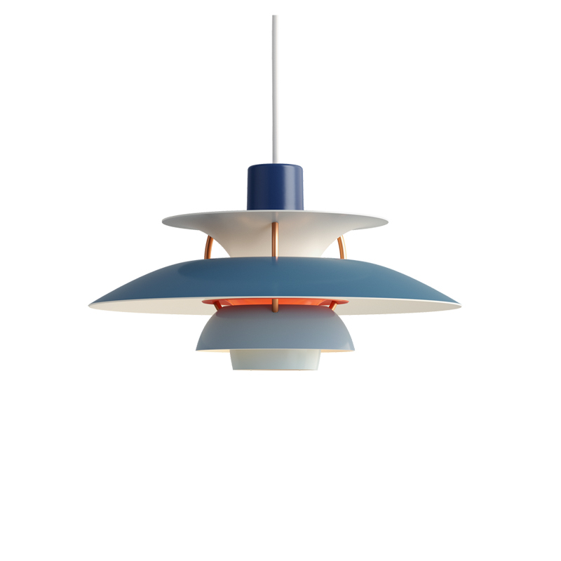 Dessinée en 1958 par Poul Henningsen pour Louis Poulsen, la suspension PH 5 tient son nom du diamètre de 50 cm de l’abat-jour principal du luminaire. À l’époque de sa création, personne ne se doutait que PH 5 finirait par incarner l’éclairage caractéristique de Poul Henningsen. La suspension se distingue par son éclairage 100 % anti-éblouissant, indépendamment de la source lumineuse employée et de la manière dont la lampe est installée. La suspension émet une lumière dirigée vers le bas et vers les côtés et s’éclaire donc elle-même. Intemporelle, PH 5 continue d'égayer les intérieurs les plus modernes grâce à sa palette de couleurs, tout comme PH 5 Mini. Cette suspension lancée en 2017 possède un abat-jour supérieur de 30 centimètres suivant les principes de Poul Henningsen. Ce premier redimensionnement de la célèbre suspension s’inscrit dans la volonté de Louis Poulsen d’accompagner la vie contemporaine et créative.