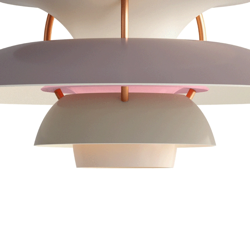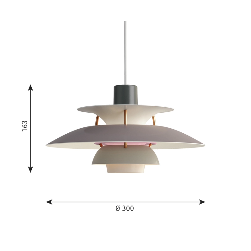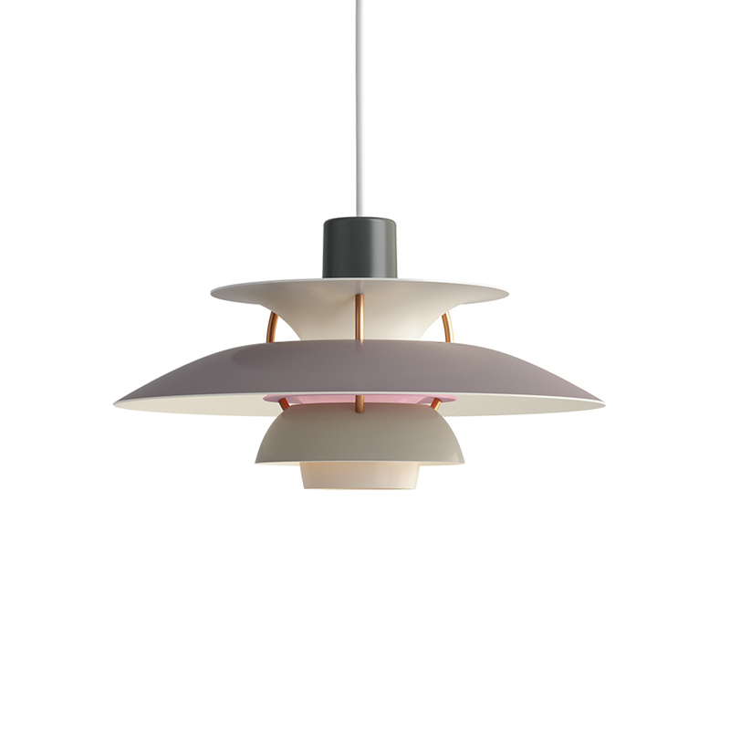 Dessinée en 1958 par Poul Henningsen pour Louis Poulsen, la suspension PH 5 tient son nom du diamètre de 50 cm de l’abat-jour principal du luminaire. À l’époque de sa création, personne ne se doutait que PH 5 finirait par incarner l’éclairage caractéristique de Poul Henningsen. La suspension se distingue par son éclairage 100 % anti-éblouissant, indépendamment de la source lumineuse employée et de la manière dont la lampe est installée. La suspension émet une lumière dirigée vers le bas et vers les côtés et s’éclaire donc elle-même. Intemporelle, PH 5 continue d'égayer les intérieurs les plus modernes grâce à sa palette de couleurs, tout comme PH 5 Mini. Cette suspension lancée en 2017 possède un abat-jour supérieur de 30 centimètres suivant les principes de Poul Henningsen. Ce premier redimensionnement de la célèbre suspension s’inscrit dans la volonté de Louis Poulsen d’accompagner la vie contemporaine et créative.