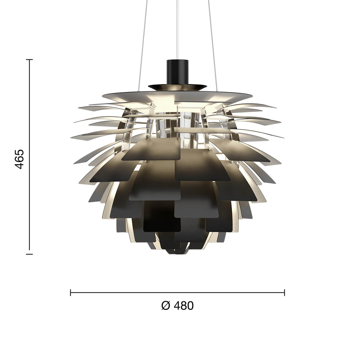 Dessinée par Poul Henningsen il y a plus de 40 ans, la suspension PH Artichoke est considérée aujourd'hui comme un classique du design. La structure est réalisée avec douze arches d'acier. Sur cette structure, Poul Henningsen a placé 72 feuilles de cuivre, et six lames sur chaque rangée. Chaque étage étant échelonné par rapport à la précédente, les 72 feuilles peuvent se couvrir l'une et l'autre. Cette conception permet une bonne vue du luminaire à partir de n'importe quel angle sans voir directement la source lumineuse située au centre de la suspension. Les PH Artichoke ont été développées à l'origine pour un restaurant de Copenhague nommé le Pavillon Langelinie, où elles peuvent encore être admirées aujourd'hui.