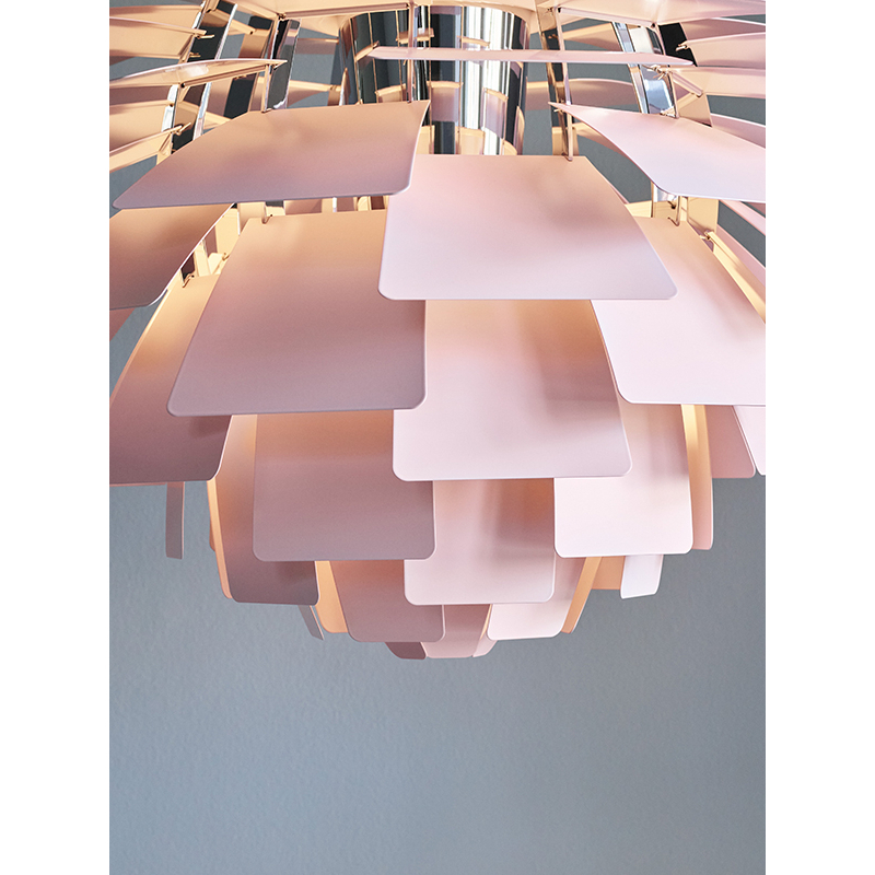 suspension PH Artichoke Pale Rose. Cette nouvelle version intègre la teinte rose pâle dans son design, offrant ainsi une interprétation moderne et élégante de ce luminaire emblématique. La