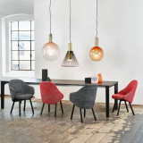 Dessinée par le studio Dechem pour Bomma, la collection Phenomena a été inspirée par des formes simples : le rond, le triangle, le rectangle et l’ovale. Le terme « phénomène » vient du mot Grec qui signifie « apparence ». La forme est ce que l’on voit au premier regard. Dans la philosophie idéaliste de Platon, les phénomènes sont transitoires, pas tout à fait réels. Cette idée définit parfaitement la collection de luminaires, réalisée avec un matériau qui est à la fois complexe et polyvalent, aussi bien solide que fragile. La partie en verre du diffuseur est réalisée à partir de cristal soufflé, ainsi l’intensité de couleur et de teinte peut légèrement varier. Bomma a développé un système sophistiqué de raccord en métal pour cette collection de lampe d’intérieurs, permettant un montage facile et sécurisé. Seule ou en composition de plusieurs luminaires, Phenomena se distingue dans tous les styles d’intérieurs par ses formes simples, ses matériaux raffiné et des détails élégants.