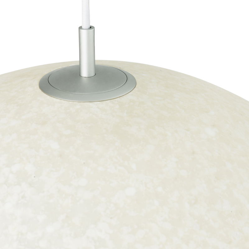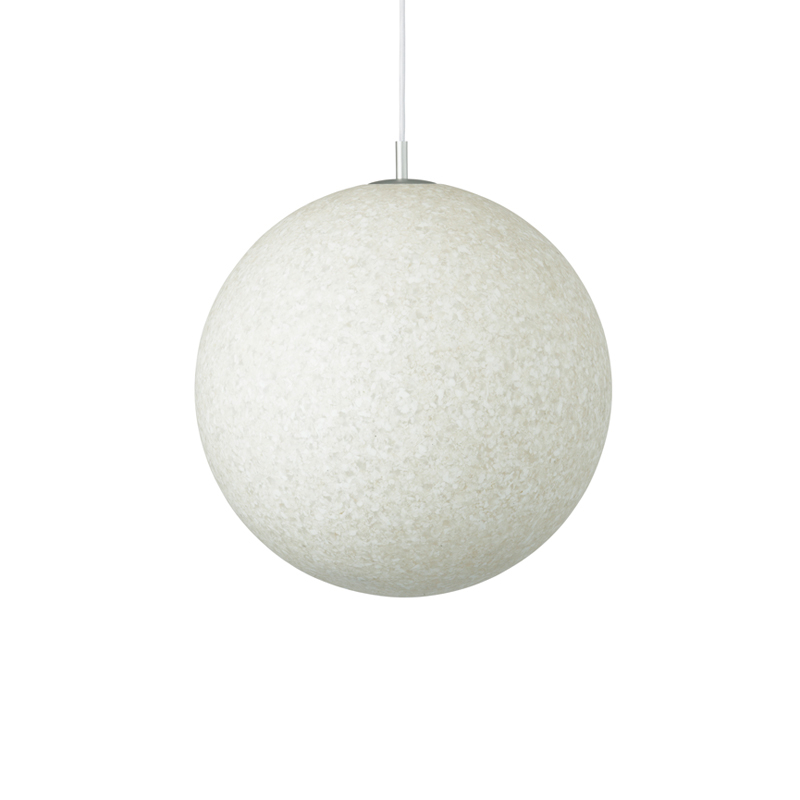 La suspension Pix n'est pas seulement un luminaire esthétique, c'est aussi un design ingénieux. Pour la fabrication de l'abat-jour, des déchets plastiques de différentes nuances de blanc sont mélangés et granulés, avant d'être chauffés à un point de fusion de 120°, permettant au matériau d'être réchauffé et réutilisé en fin de vie sans altérer ses propriétés. L'épaisseur du matériau donne à la Pix un aspect opaque lorsque la lumière est éteinte. Lorsque la lumière est allumée, l'apparence du matériau se transforme, obtenant un aspect translucide, la lumière de l'ampoule traversant et mettant en valeur la structure granulée de l'abat-jour. Quel que soit l'endroit où elle se trouve, la suspension Pix Normann Copenhagen se fondra à coup sûr dans l'intérieur environnant, tandis que son abat-jour distinctif offre une lueur chaleureuse et charismatique.
