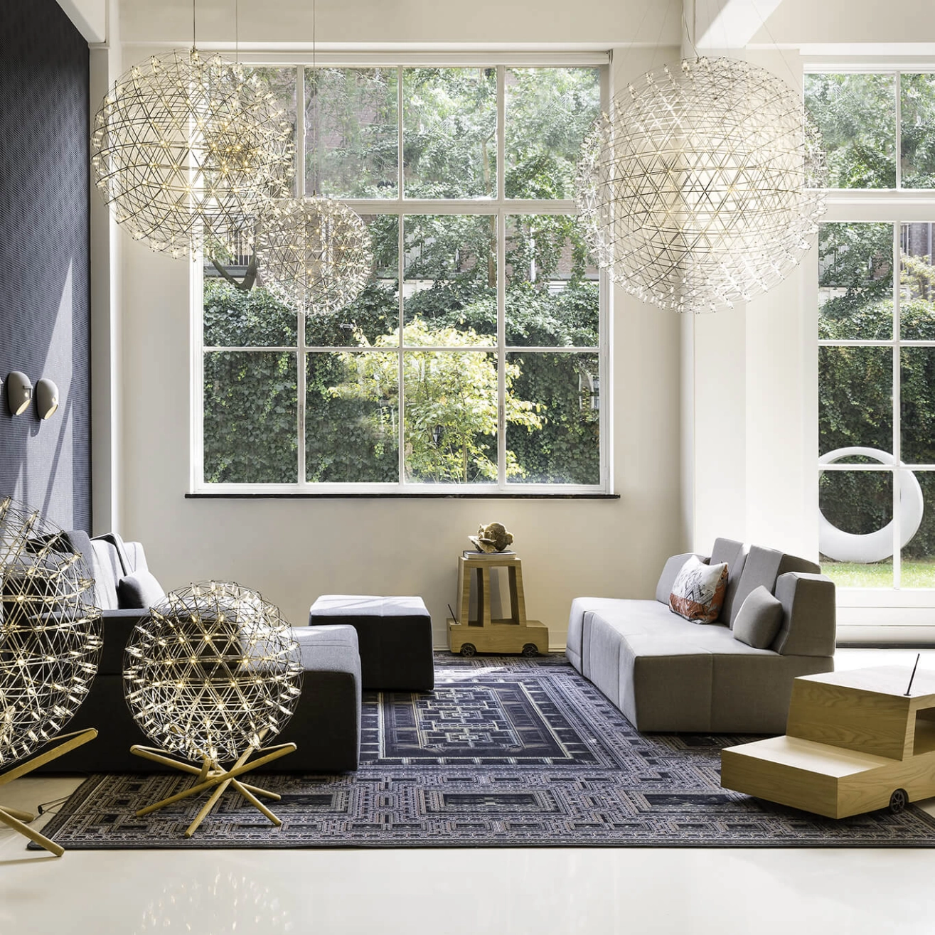 Raimond Puts réalise avec OX-ID cette suspension lumineuse pour Moooi. La structure est en acier inoxydable sur laquelle sont fixées 252 LED. Sculpture suspendue le jour, elle devient une constellation lumineuse dans le noir. Suspendue comme en apesanteur par un câble électrique transparent, Raimond diffusera des jeux d'ombres insolites au dessus du lit ou dans votre salon.