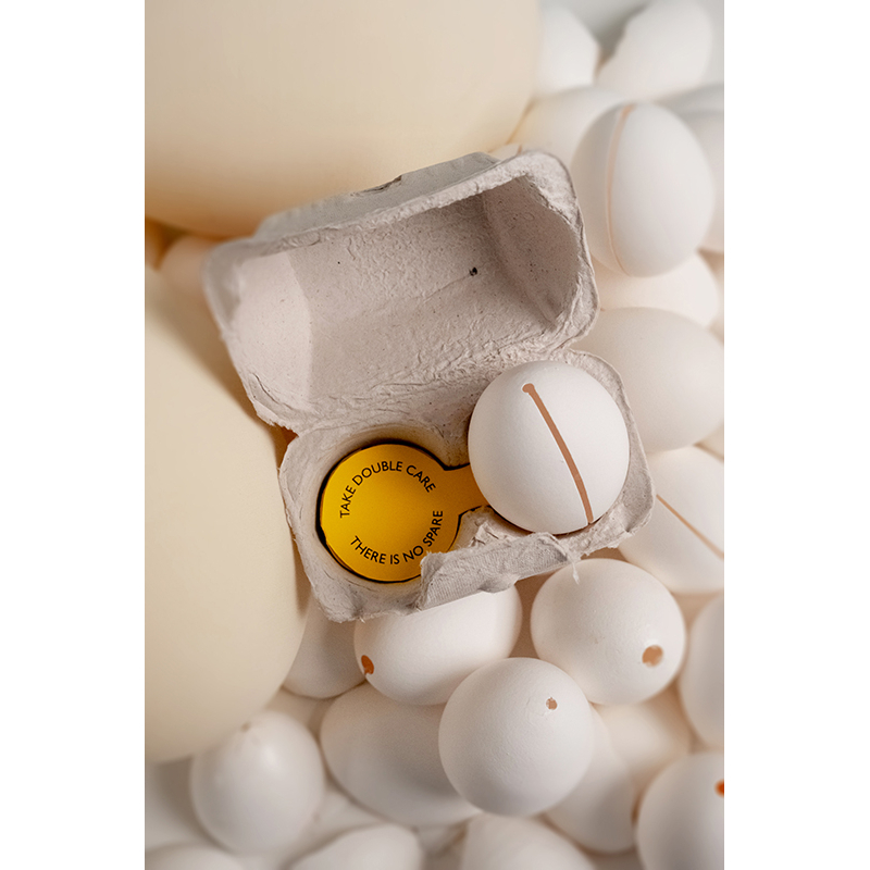 Fabriquée a partir d'une vraie coquille d'œuf, Reality est une lampe délicate, fragile et efficace, dessinée par Theo Möller pour Ingo Maurer. La suspension Reality est réalisée à partir d’un véritable œuf certifié bio, dans lequel est découpée minutieusement une fine fente géométrique. Suspendue par des câbles en cuivre, la LED offre un éclairage doux avec tout juste neuf lumens. C'est dans cette discrétion que réside la véritable beauté de la lampe Reality Ingo Maurer. Reality est livré dans un carton sécurisé avec trois aiguilles en cuivre et le câble de suspension avec connexion USB.