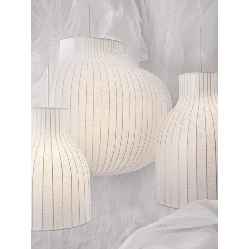 Strand offre à la fois un éclairage diffus à travers son cocon et un éclairage direct par son ouverture supérieure comme inférieure. Utilisée seule ou en composition, la suspension