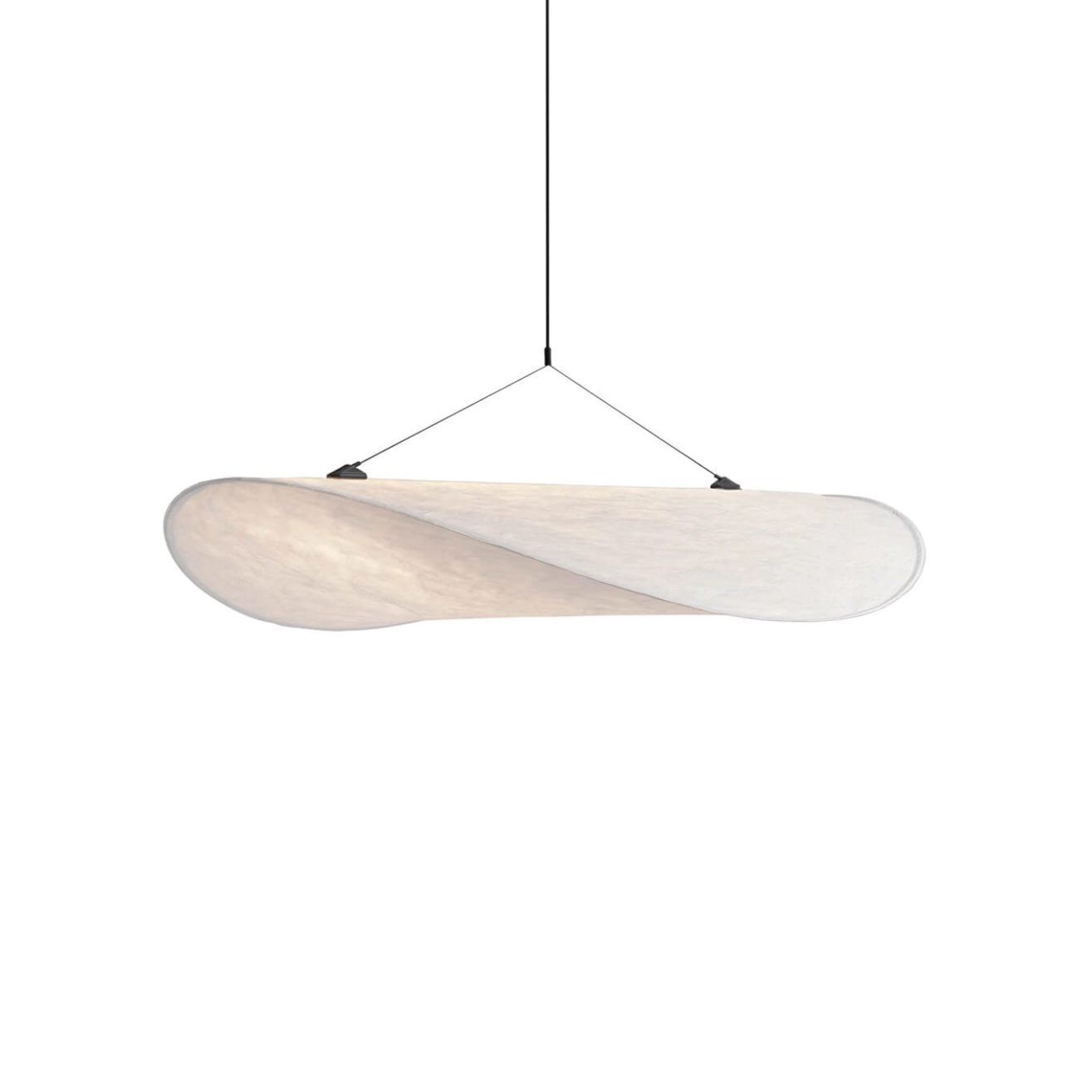 Avec ses dimensions imposantes, la suspension Tense ressemble à un nuage mou. Réalisation vraiment moderne, le diffuseur en Tyvek représente un matériau à la fois durable et doux - tout en étant 100% recyclable. La flexibilité de ce diffuseur comme du papier permet à sa structure fine d'accentuer les qualités de nuage de la suspension Tense. Edité par New Works, ce luminaire aérien est  équipé d'une ampoule LED mince. Tous les composants de la suspension Tense s'insèrent dans une boite pour faciliter le transport. Une approche vraiment moderne de l'éclairage.