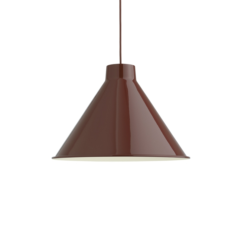 Avec Top, Big-Game propose une interprétation contemporaine de la suspension archétypale conique avec un design vraiment universel. Editée par Muuto, Top allie élégamment l’expression familière du luminaire en métal avec une technologie innovante. Fabriquée en acier repoussé avec une bordure graphique, la collection Top est très polyvalente et offre une variété d’applications et de combinaisons en mélangeant les tailles et les couleurs. La suspension peut être très discrète comme faire forte impression dans l’atmosphère chaleureuse de la chambre ou de la cuisine, ou bien dans un hall d’accueil d’hôtel ou un restaurant. Sa finition laquée brillante accentue la silhouette caractéristique et la fait ressortir. Son design précis est rendu possible par une source lumineuse compacte qui devient partie intégrante du design. Ainsi, la suspension Top offre une lumière unique sans éblouissement grâce aux proportions et à l'angle de l'abat-jour ainsi qu'au positionnement de la source lumineuse.