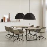 Under The Bell ? « sous la cloche », est une suspension aux dimensions imposantes, dessinée par Iskos Berlin pour l'éditeur Muuto. Ce luminaire design fonctionne aussi bien proche du plafond pour éclairer largement la pièce, ou positionné plus bas au-dessus d'une table. Le feutre de PET moulé qui constitue l'abat jour permet d'améliorer également l'acoustique de la pièce. Avec cette version en diamètre 55, la suspension Under The Bell s'intègre facilement dans des espaces plus petits, que ce soit à la maison ou dans un environnement professionnel.