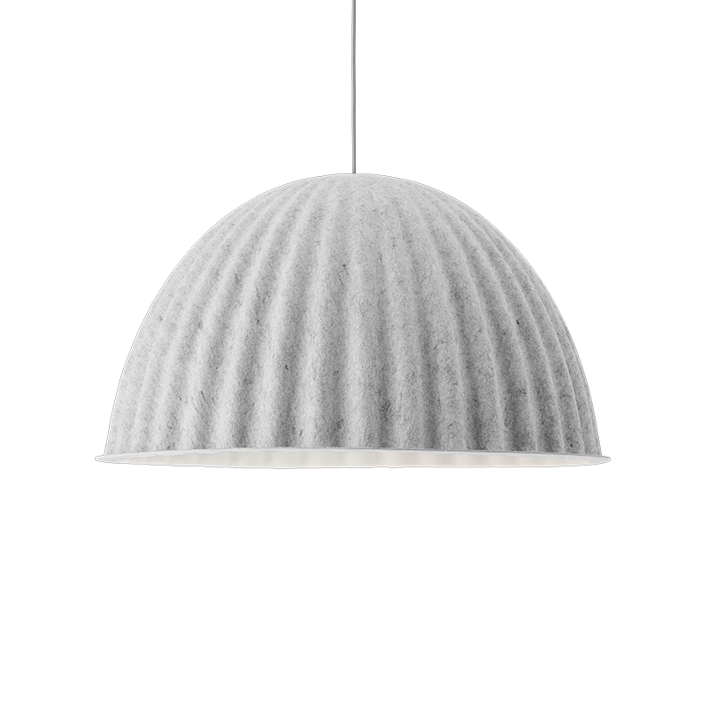 Under The Bell ? « sous la cloche », est une suspension aux dimensions imposantes, dessinée par Iskos Berlin pour l'éditeur Muuto. Ce luminaire design fonctionne aussi bien proche du plafond pour éclairer largement la pièce, ou positionné plus bas au-dessus d'une table. Le feutre de PET moulé qui constitue l'abat jour permet d'améliorer également l'acoustique de la pièce.