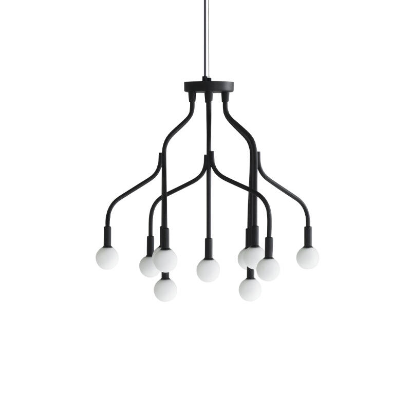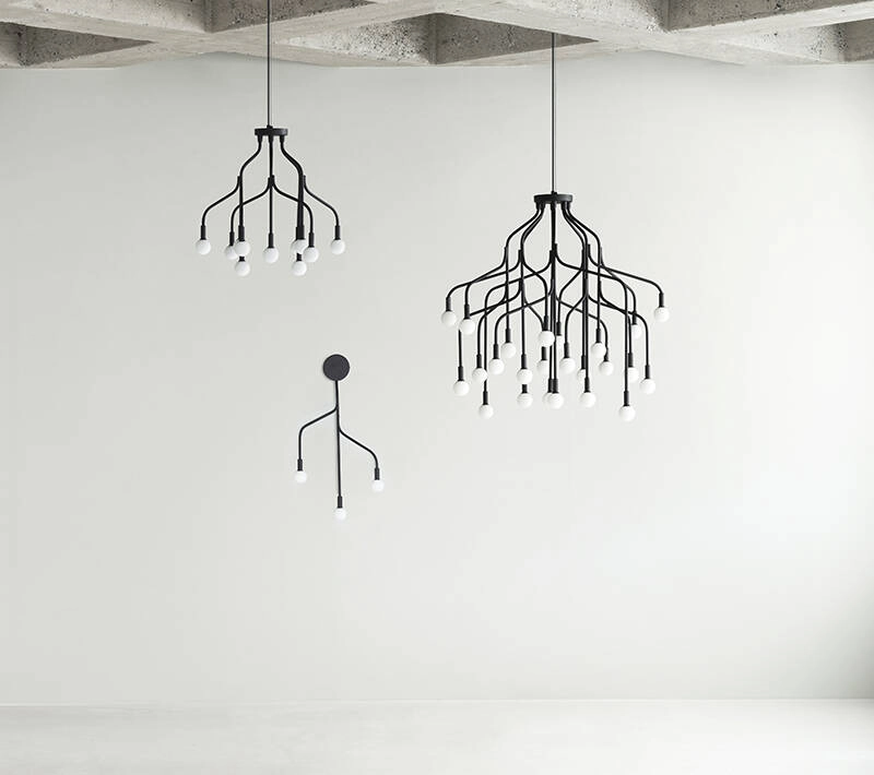 Imaginée par le designer Simon Legald pour Normann CopenhagenVekst est une suspension lustre à 12 ampoules caractérisée par ses bras sculpturaux en forme de branches. Le design de ce lustre est largement inspiré de la nature grâce à ses bras élancés rappelant la couronne d'un arbre. Chaque branche de la suspension lustre Vekst est peint par poudrage et est doté d'une ampoule sphérique qui évoque les bourgeons d'un arbre. Ces bourgeons, illuminés par un éclairage LED, créent une atmosphère chaleureuse. Les différentes branches de Vekst reproduisent la symétrie des éléments présents dans la nature. La suspension lustre Vekst se décline en deux tailles : 12 et 24 bras, chacun équipé d'une ampoule. Editée par Normann Copenhagen, Vekst est une suspension originale et majestueuse, parfaite pour les grands halls d'entrée ou au-dessus d'une table à manger.