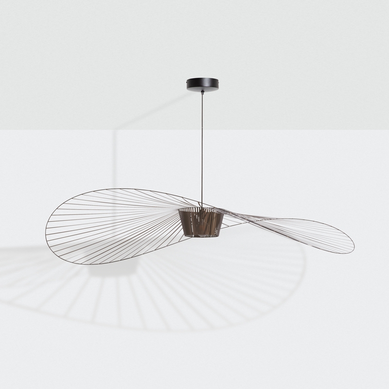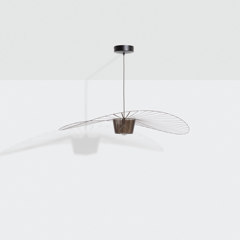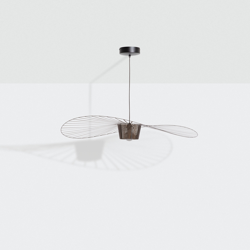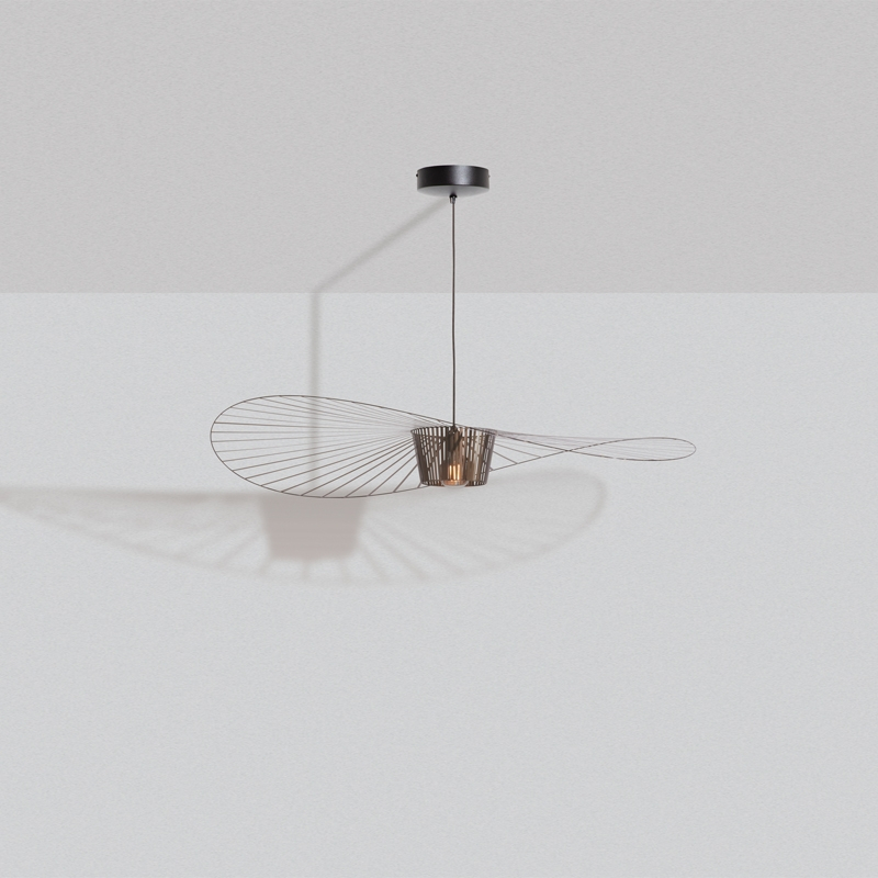 suspension Vertigo est une icône de Petite Friture, qui combine fer, fibre de verre et des rubans posés à la main en polyuréthane. Cette émulsion des matériaux permet un véritable travail sur la forme, le volume, la matière…