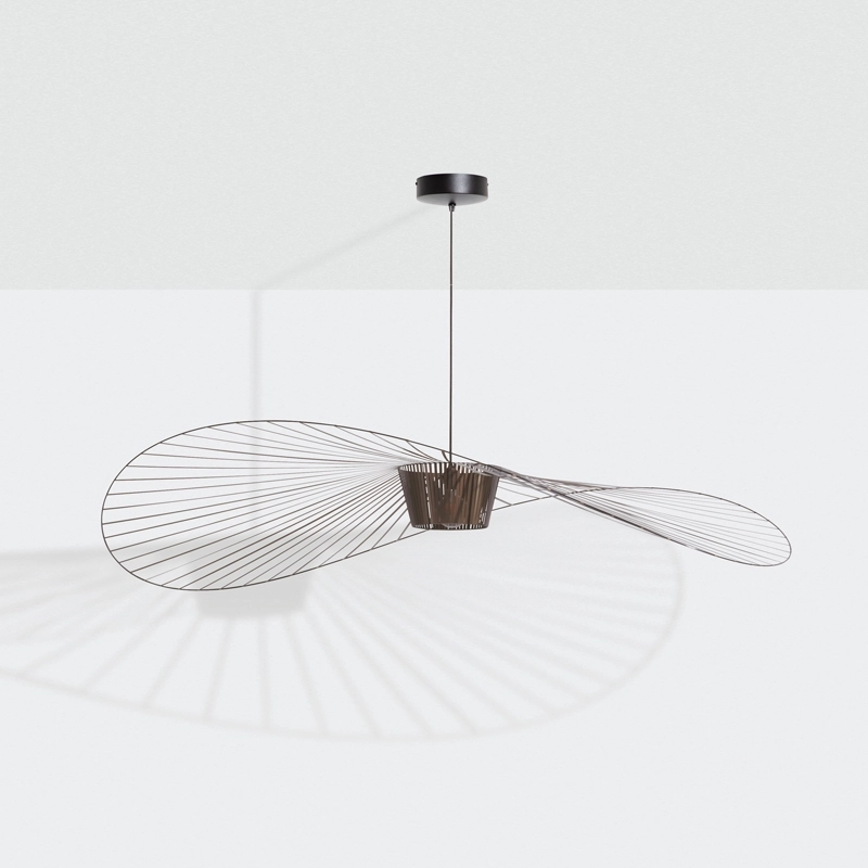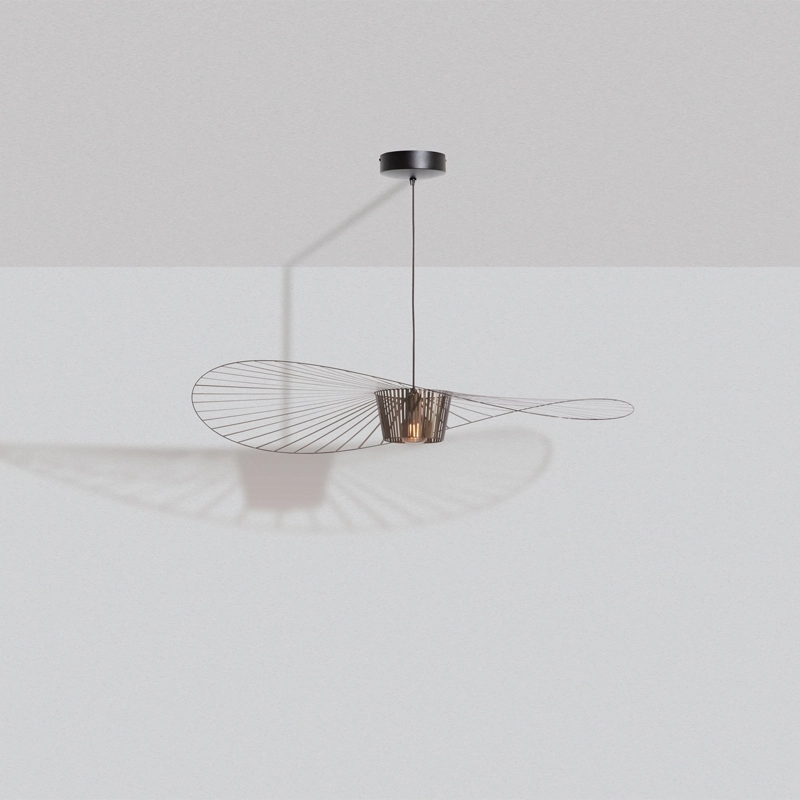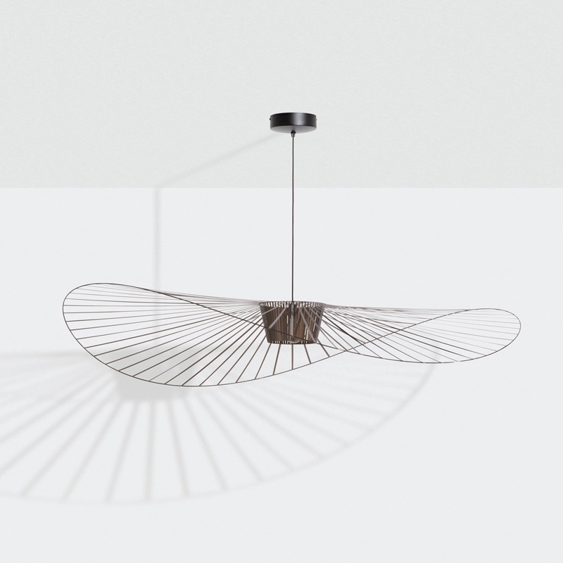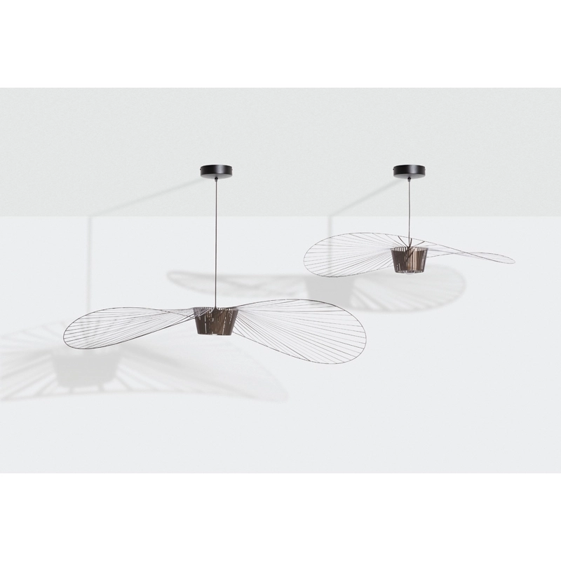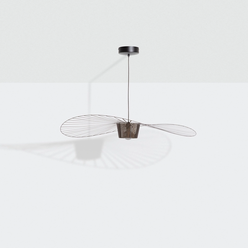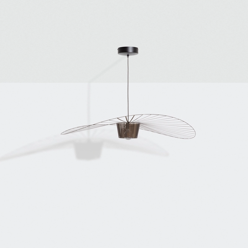 Dessinée par Constance Guisset pour Petite Friturela suspension Vertigo représente un incontournable du design d'aujourd'hui. En effet, Vertigo fut reconnu très tôt par Rossana Orlandi et a ainsi intégré de nombreuses collections permanentes prestigieuses telles que celle du MoMA, du Cap et du MAD. Ce luminaire design a également connu un enthousiasme rapide auprès du public. La suspension Vertigo est disponible en plusieurs tailles et couleurs, ce qui la rend adaptable à tous les intérieurs. Elle peut être utilisée comme éclairage principal ou comme élément décoratif. Vertigo est une véritable sculpture lumineuse graphique qui joue sur les ombres portées et dessine un espace graphique comme suspendu entre le sol et le plafond. Cette suspension très légère se meut au rythme des courants d'air. La suspension Vertigo de Petite friture est une « lampe-cabane » enveloppante qui suggère un espace d'intimité. Allumée, la lampe projette un motif ombré sur les murs environnants et apporte une atmosphère chaleureuse et poétique aussi bien dans la chambre qu'au-dessus de la table de la cuisine. Modulable en hauteur, la lampe Vertigo se fond naturellement dans son environnement, et s’adapte à différentes configurations. Une fois allumée, la suspension Vertigo magnifie la lumière et projette un joli motif ombré sur les murs de la pièce. Sa disposition permet un éclairage à la fois diffus et intense. La suspension Vertigo est une icône de Petite Friture, qui combine fer, fibre de verre et des rubans posés à la main en polyuréthane. Cette émulsion des matériaux permet un véritable travail sur la forme, le volume, la matière…  Vertigo habille les grands espaces par sa présence singulière et onirique. L’esthétique de cette suspension fait écho aux caractéristiques de la maison Petite Friture : graphisme, détail et finition.