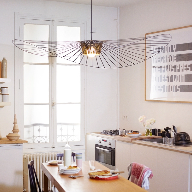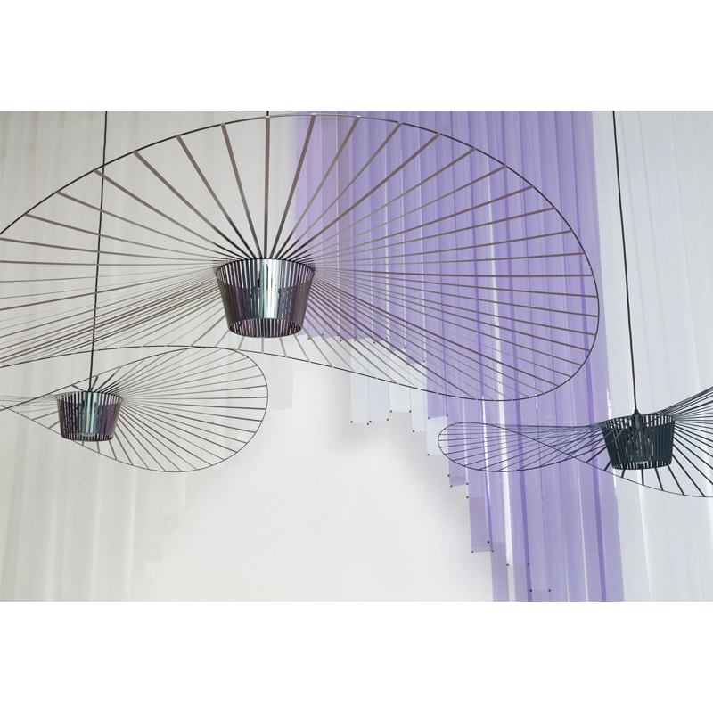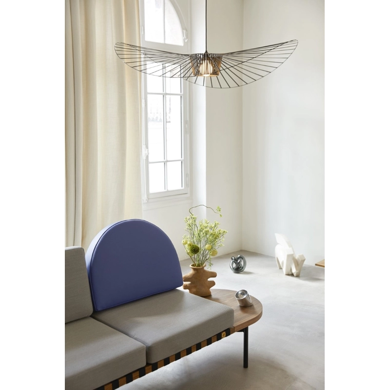 Dessinée par Constance Guisset pour Petite Friturela suspension Vertigo représente un incontournable du design d'aujourd'hui. En effet, Vertigo fut reconnu très tôt par Rossana Orlandi et a ainsi intégré de nombreuses collections permanentes prestigieuses telles que celle du MoMA, du Cap et du MAD. Ce luminaire design a également connu un enthousiasme rapide auprès du public. La suspension Vertigo est disponible en plusieurs tailles et couleurs, ce qui la rend adaptable à tous les intérieurs. Elle peut être utilisée comme éclairage principal ou comme élément décoratif. Vertigo est une véritable sculpture lumineuse graphique qui joue sur les ombres portées et dessine un espace graphique comme suspendu entre le sol et le plafond. Cette suspension très légère se meut au rythme des courants d'air. La suspension Vertigo de Petite friture est une « lampe-cabane » enveloppante qui suggère un espace d'intimité. Allumée, la lampe projette un motif ombré sur les murs environnants et apporte une atmosphère chaleureuse et poétique aussi bien dans la chambre qu'au-dessus de la table de la cuisine. Modulable en hauteur, la lampe Vertigo se fond naturellement dans son environnement, et s’adapte à différentes configurations. Une fois allumée, la suspension Vertigo magnifie la lumière et projette un joli motif ombré sur les murs de la pièce. Sa disposition permet un éclairage à la fois diffus et intense. La suspension Vertigo est une icône de Petite Friture, qui combine fer, fibre de verre et des rubans posés à la main en polyuréthane. Cette émulsion des matériaux permet un véritable travail sur la forme, le volume, la matière…  Vertigo habille les grands espaces par sa présence singulière et onirique. L’esthétique de cette suspension fait écho aux caractéristiques de la maison Petite Friture : graphisme, détail et finition.