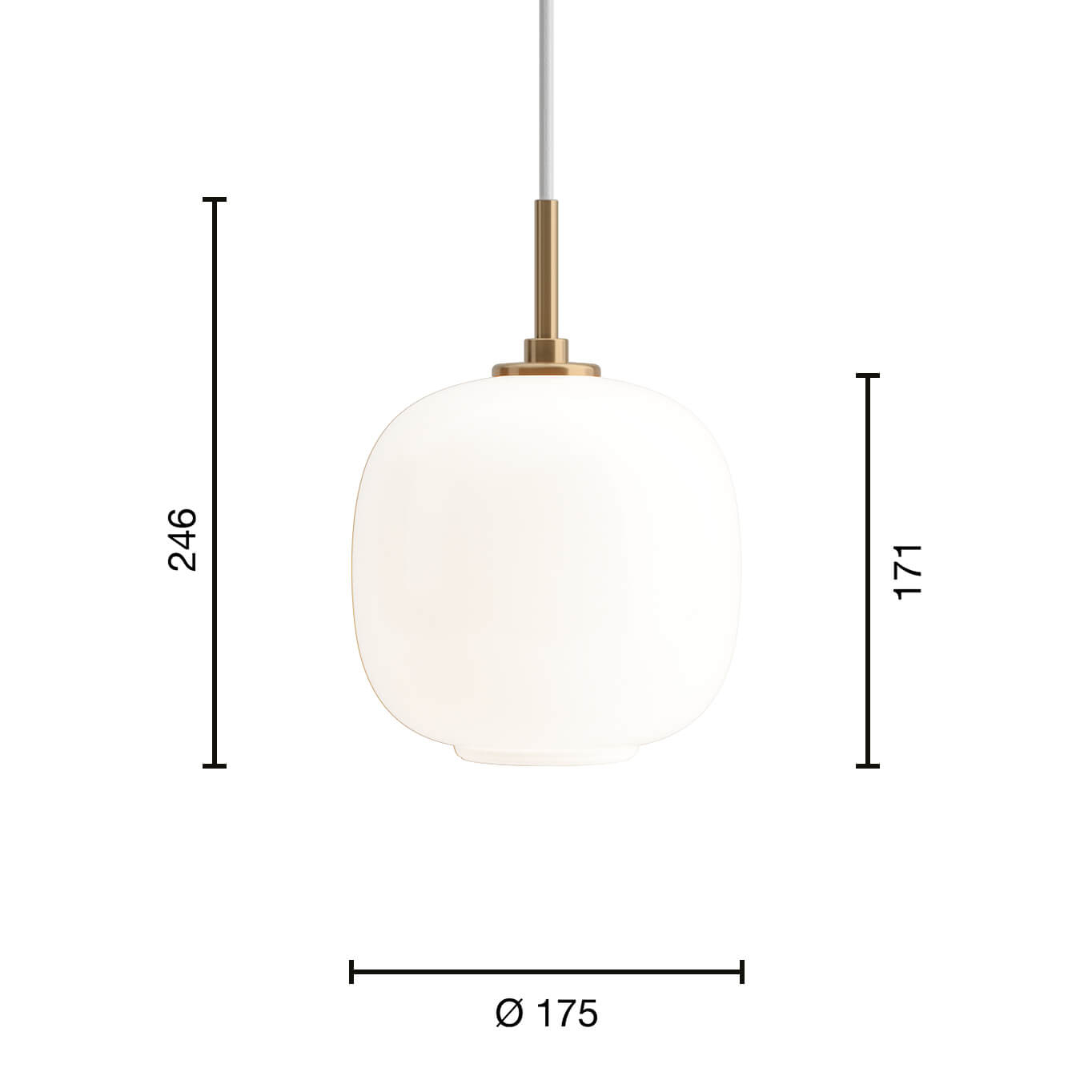 En 2016, la suspension Radiohus Pendant fait son retour sous l’appellation VL45 Radiohus Pendant. Elle avait été dessinée dans les années 1940 par l’architecte danois Vilhelm Lauritzen en partenariat avec Louis Poulsen pour la construction de la maison de la radio à Copenhague (Radiohuset). La suspension respecte le dessin d’origine, avec un support en laiton et un abat-jour de trois couches de verre soufflé. Les couches externe et interne sont constituées de verre poli transparent, tandis que la couche intermédiaire est réalisée en verre blanc. Le luminaire fournit une lumière homogène et diffuse.