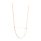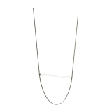 La suspension Wireline créée par Formafantasma pour la marque Flos, est une suspension impressionnante à lumière diffuse. Elle se compose d'un tube en verre cannelé transparent avec un diffuseur intérieur en PC opale. Le luminaire est installé sur une grand bande en caoutchouc rose vert forêt.  La suspension Wireline est une véritable sculpture lumineuse qui magnifie les grands espaces.