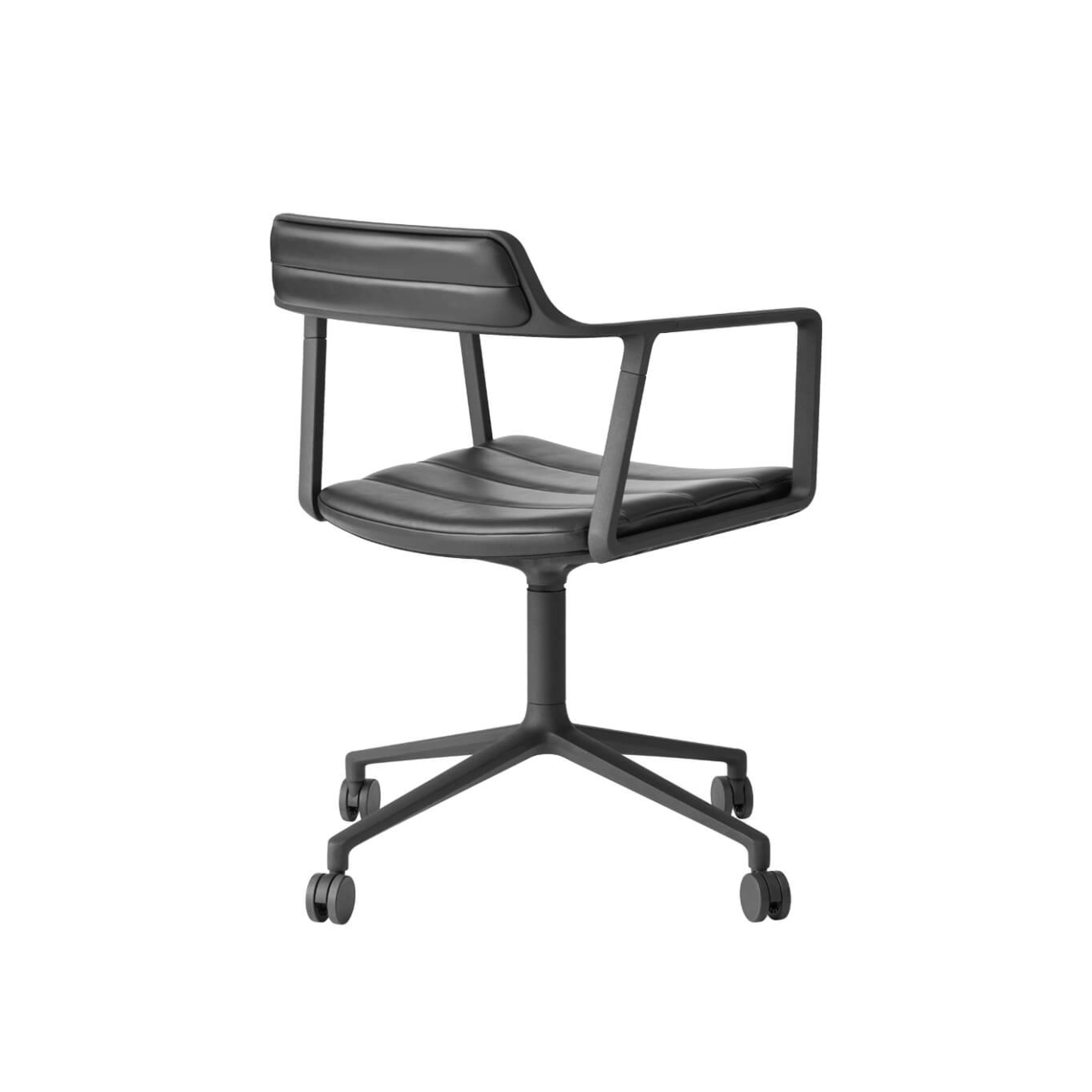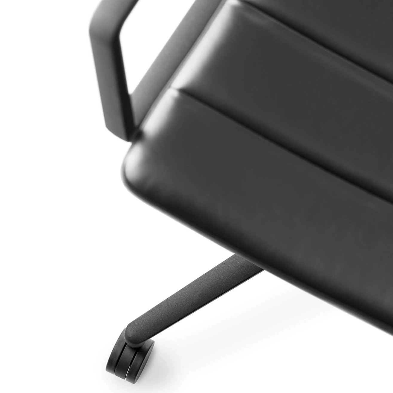 Chaise SWIVEL CHAIR 452 à roulettes Cuir noir / Aluminium peint noir VIPP
