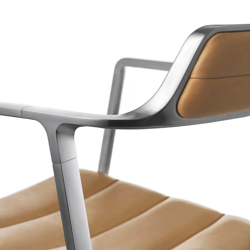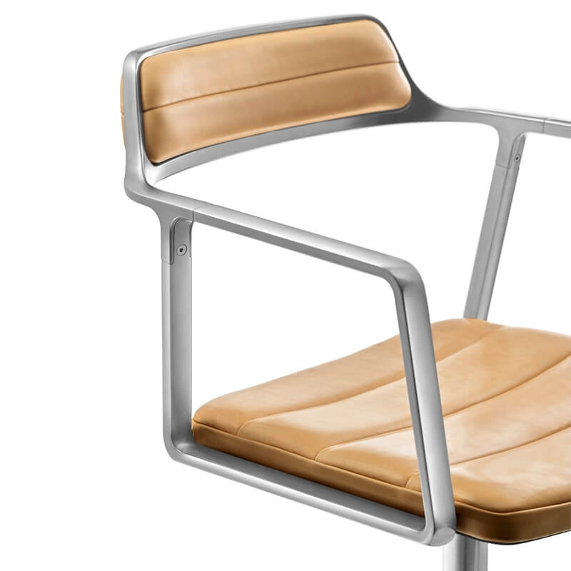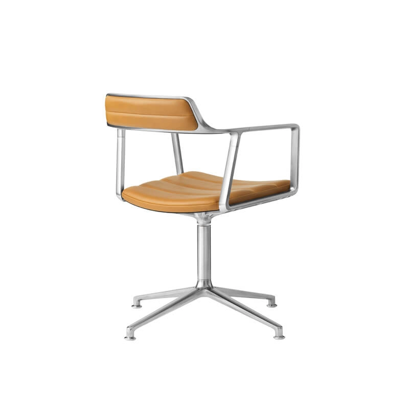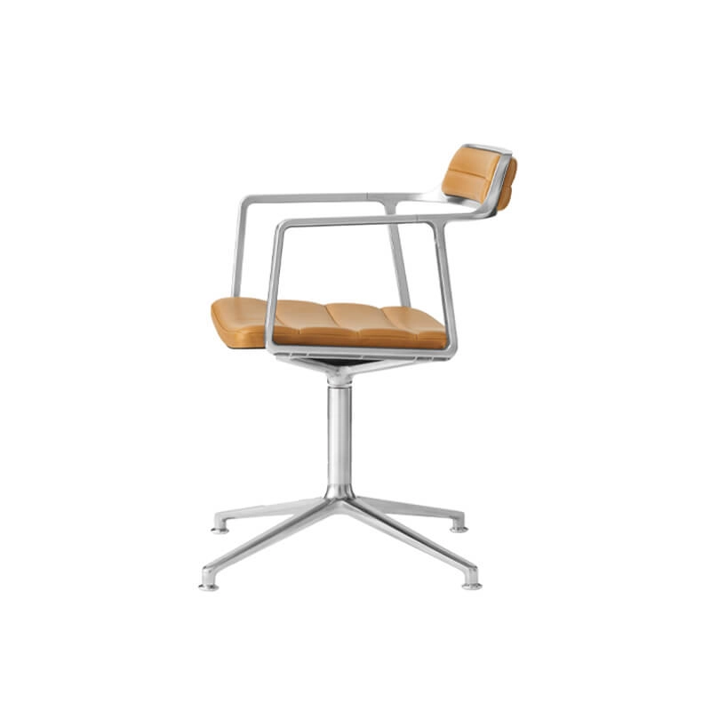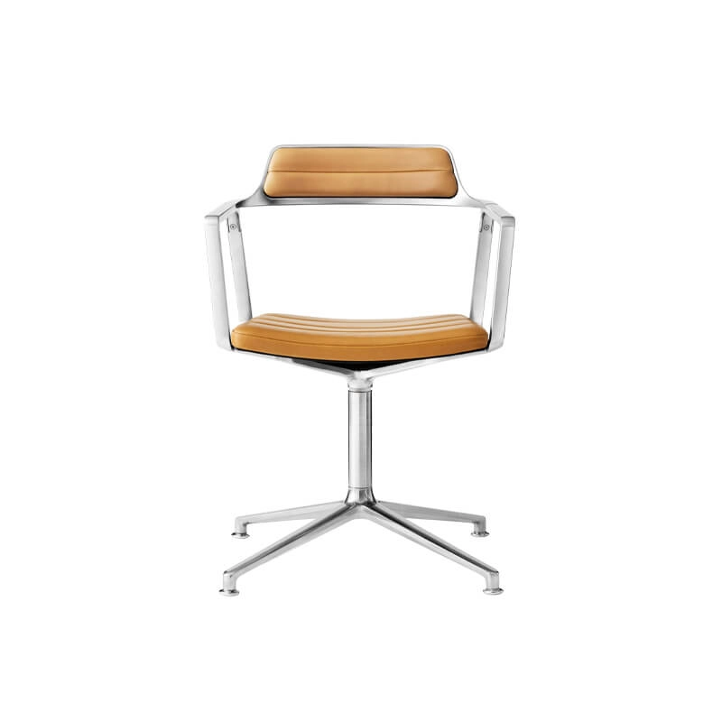 3. SWIVEL CHAIR 452 sur patins Cuir camel / Aluminium poli