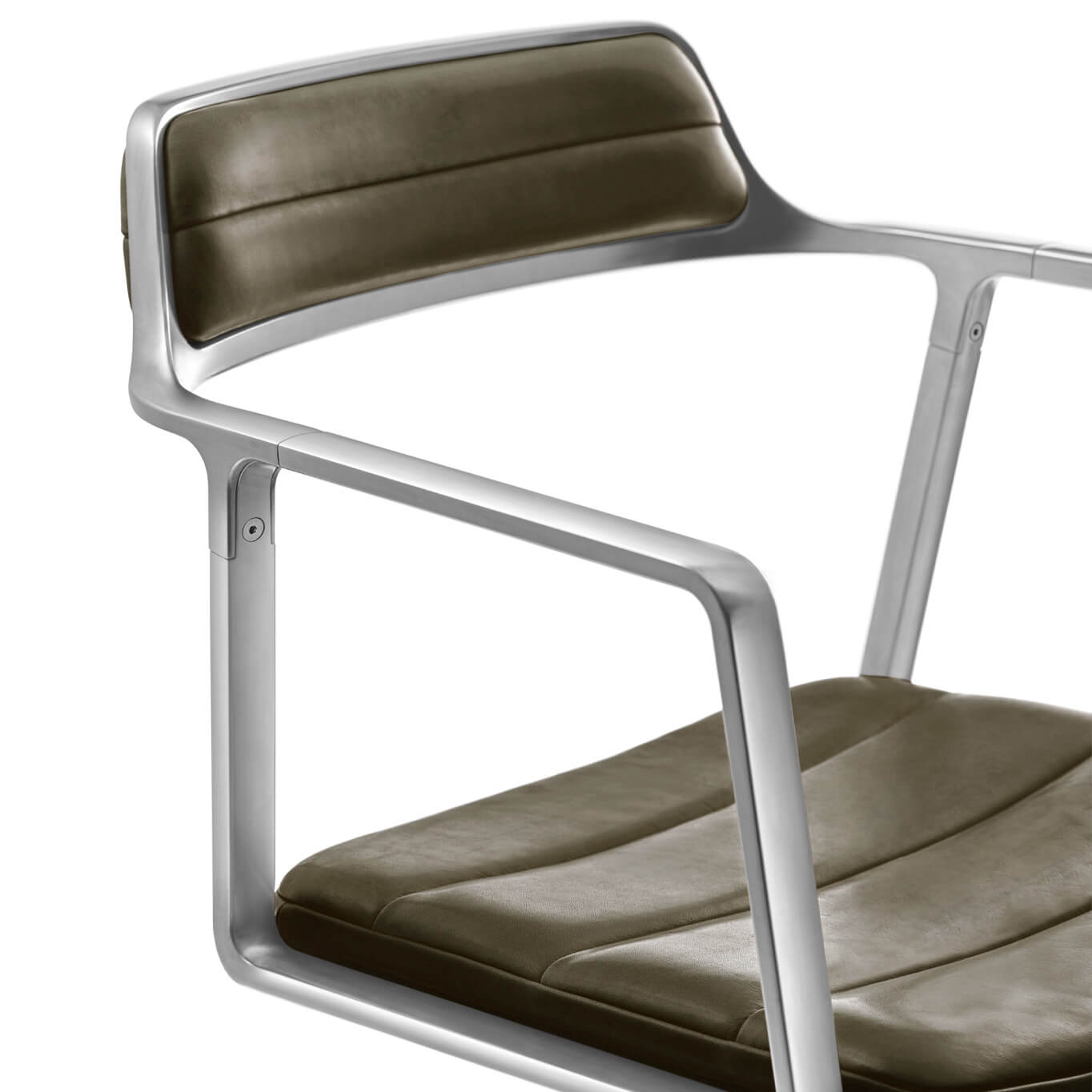 3. SWIVEL CHAIR 452 sur patins Cuir vert Bosco / Aluminium poli