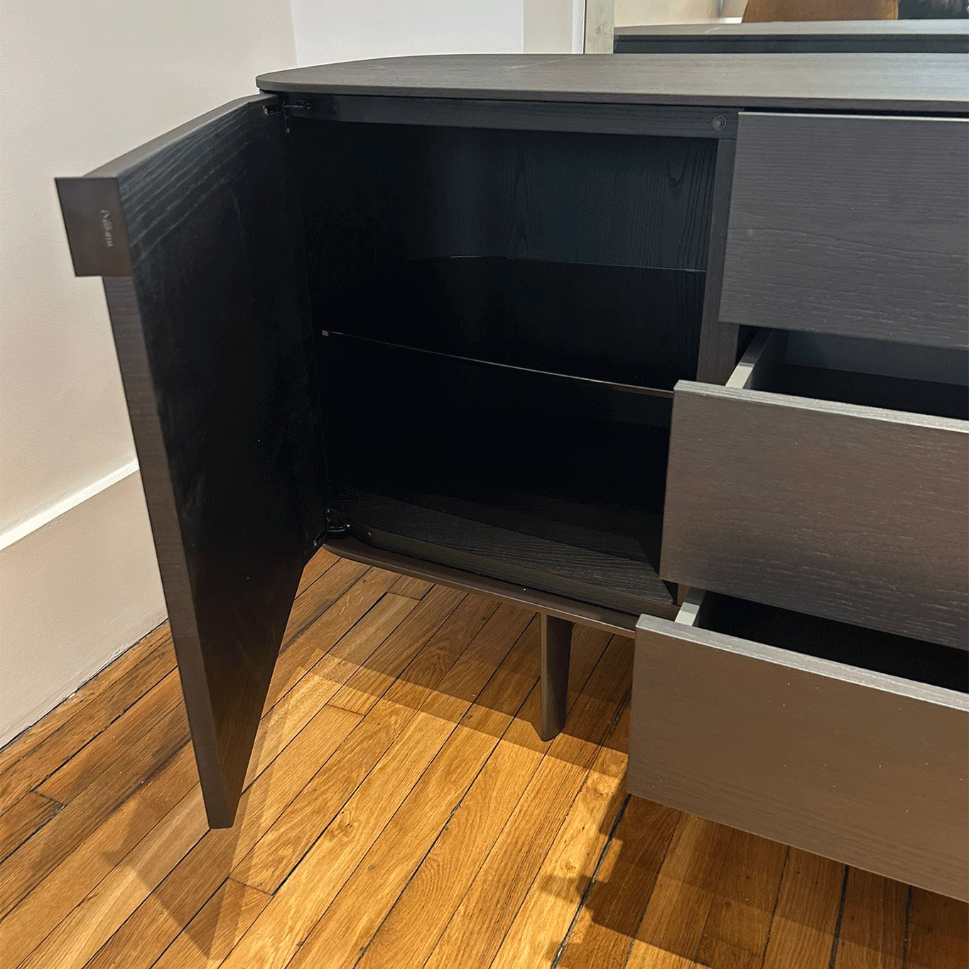 Symphony est un buffet d'occasion signé par le designer Emmanuel Gallina et édité par Poliform. Cette collection se distingue par l’essentialité de ses lignes, sublimée par l’emploi de matériaux précieux et une finition d’une grande finesse. La forme elliptique du buffet, rehaussée par des essences de bois raffinées, confère à l’ensemble une élégance intemporelle. Déclinée en différentes hauteurs et configurations, des versions hautes et moyennes à portes jusqu’aux modèles bas avec tiroirs ou compartiment ouvert, la collection Symphony allie équilibre esthétique et fonctionnalité contemporaine.