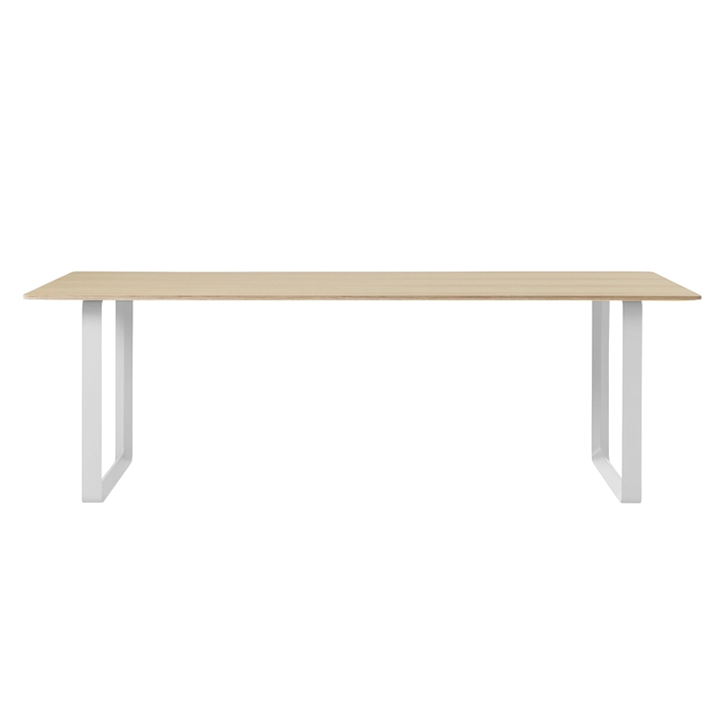 70/70 est une table au design minimaliste, aux lignes légères et à la silhouette aérienne. Le plateau est réalisé en contreplaqué avec une finition stratifiée, linoleum ou chêne. Le piètement est formé de deux cadres carrés en fonte d'aluminium de 70 x 70, d'où son nom. Inspirée de l'esthétique scandinave sobre et élégante, c'est une table au design épuré mais dotée de détails subtils qui font toute la différence. Disponible en plusieurs dimensions et finitions, la table 70/70, éditée par Muuto, est idéale pour une salle à manger ou un bureau.