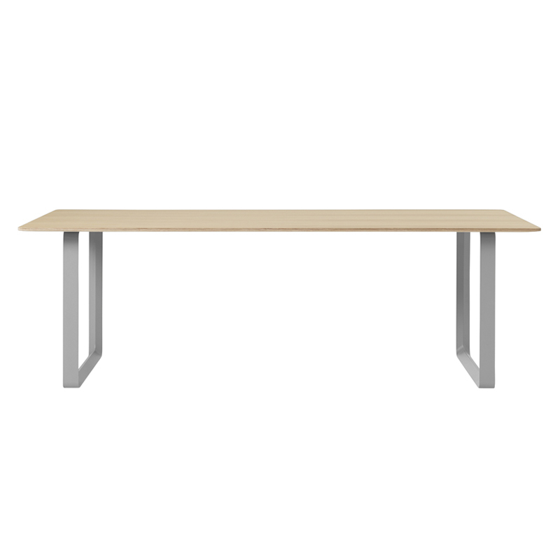 70/70 est une table au design minimaliste, aux lignes légères et à la silhouette aérienne. Le plateau est réalisé en contreplaqué avec une finition stratifiée, linoleum ou chêne. Le piètement est formé de deux cadres carrés en fonte d'aluminium de 70 x 70, d'où son nom. Inspirée de l'esthétique scandinave sobre et élégante, c'est une table au design épuré mais dotée de détails subtils qui font toute la différence. Disponible en plusieurs dimensions et finitions, la table 70/70, éditée par Muuto, est idéale pour une salle à manger ou un bureau.