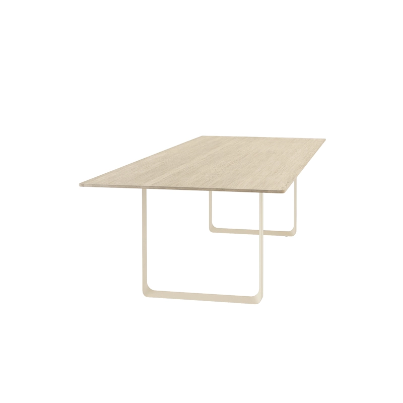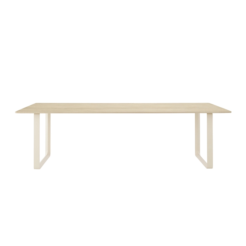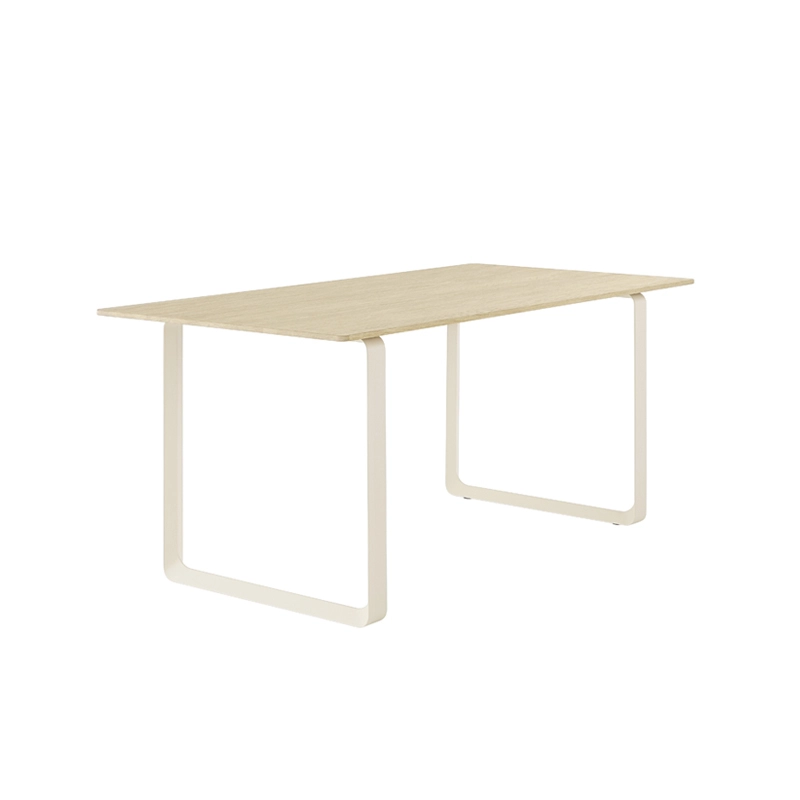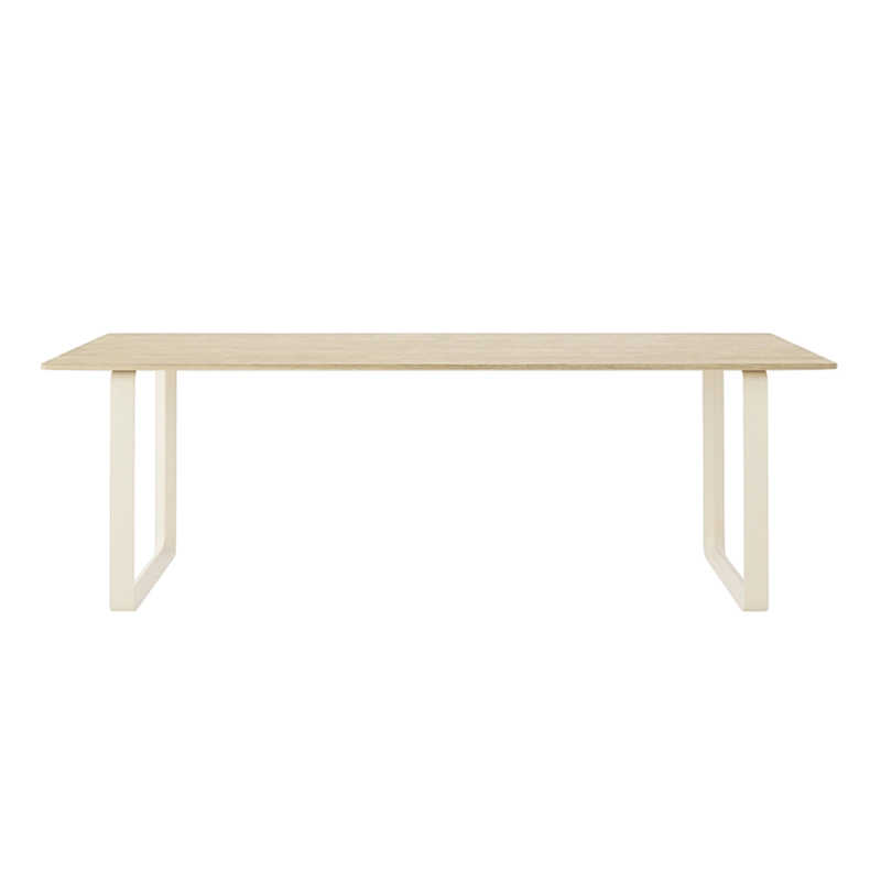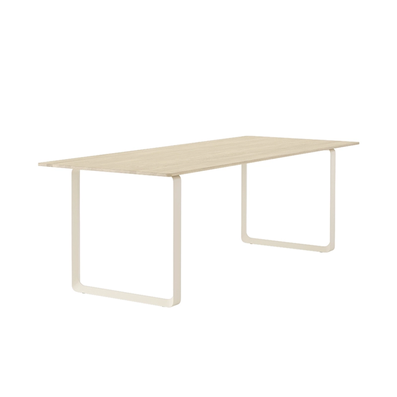 70/70 est une table au design minimaliste, aux lignes légères et à la silhouette aérienne. Le plateau est réalisé en contreplaqué avec une finition stratifiée, linoleum ou chêne. Le piètement est formé de deux cadres carrés en fonte d'aluminium de 70 x 70, d'où son nom. Inspirée de l'esthétique scandinave sobre et élégante, c'est une table au design épuré mais dotée de détails subtils qui font toute la différence. Disponible en plusieurs dimensions et finitions, la table 70/70, éditée par Muuto, est idéale pour une salle à manger ou un bureau.