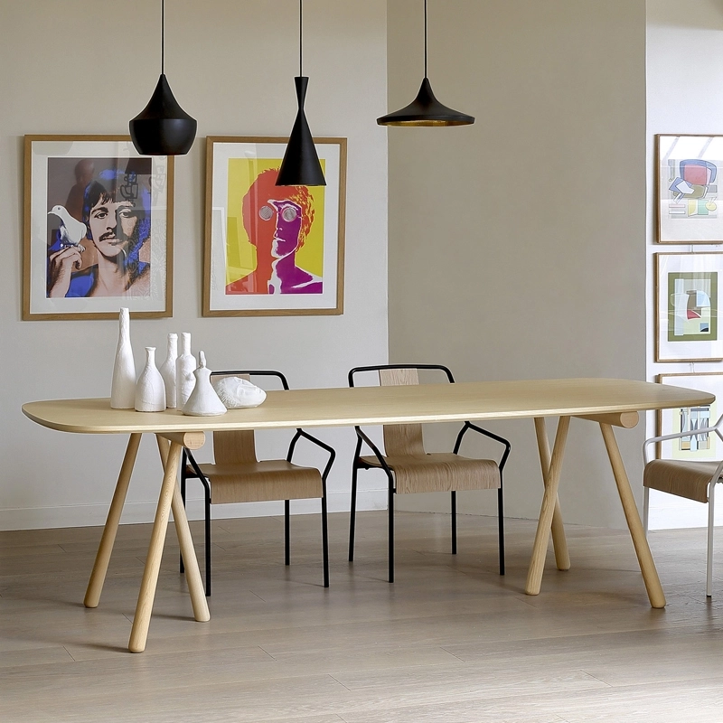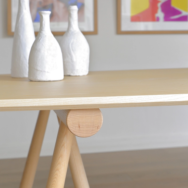 La designer Patricia Urquiola collabore avec le nouvel éditeur français COEDITION et dessine la collection Altay. Celle-ci allie tradition et modernité sous la forme d'une table de repas, d'un fauteuil et d'un petit guéridon élégant. La table en frêne est dotée d'un plateau aux dimensions confortables et de pieds reprenant la forme de tréteaux, qui assurent une bonne stabilité. Cette table s'intègre facilement dans les salles à manger et peut également servir de grand bureau. Les lignes pures et les matériaux naturels de grande qualité, font d'Altay une table à la fois moderne et intemporelle.
