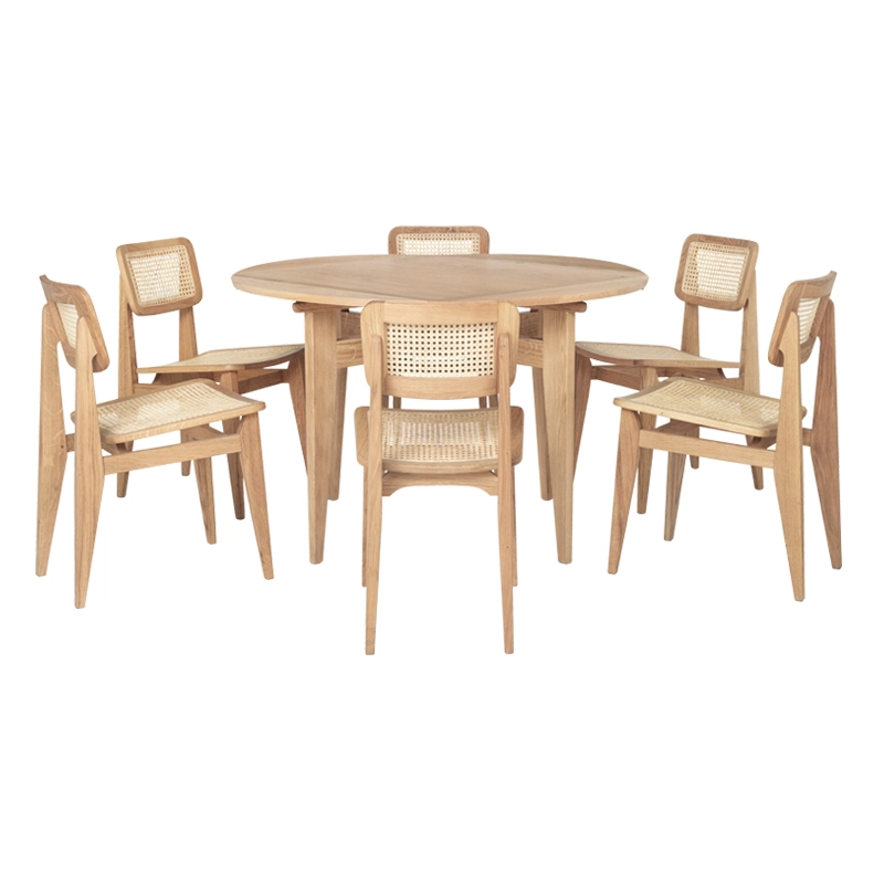 Ingéniosité, élégance et flexibilité définissent ce classique du design d'après-guerre réinventé pour les maisons modernes. Un seul mouvement fluide transforme une table de travail carrée en une table à manger ronde pour six personnes. Gascoin a créé deux tables en une,une solution polyvalente hautement fonctionnelle, mais magnifiquement raffinée. Simplifiée par Gubi pour les maisons modernes, la nouvelle B-Table est à la fois élégante et flexible. Idéale pour la nature multitâche de notre vie quotidienne, en particulier lorsque l'espace est limité. Disponible dans des cadres en chêne ou en noyer, la B-Table de Gubi fait partie d'une collection unifiée de Gascoin.