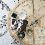 Rio a été conçue à l'origine par Charlotte Perriand en 1962 pour la maison d'un particulier au Brésil. Cassina la réédite par la suite et nous présente cette spectaculaire table basse construite à partir de six sections de différents rayons en marbre ou en rotin avec un bord extérieur en bois. Six pieds fabriqués à partir du même bois forment la base de la table. Avec sa forme à la fois ronde et asymétrique, la table Rio séduit par son originalité et représente une des créations les plus poétiques de la designer.