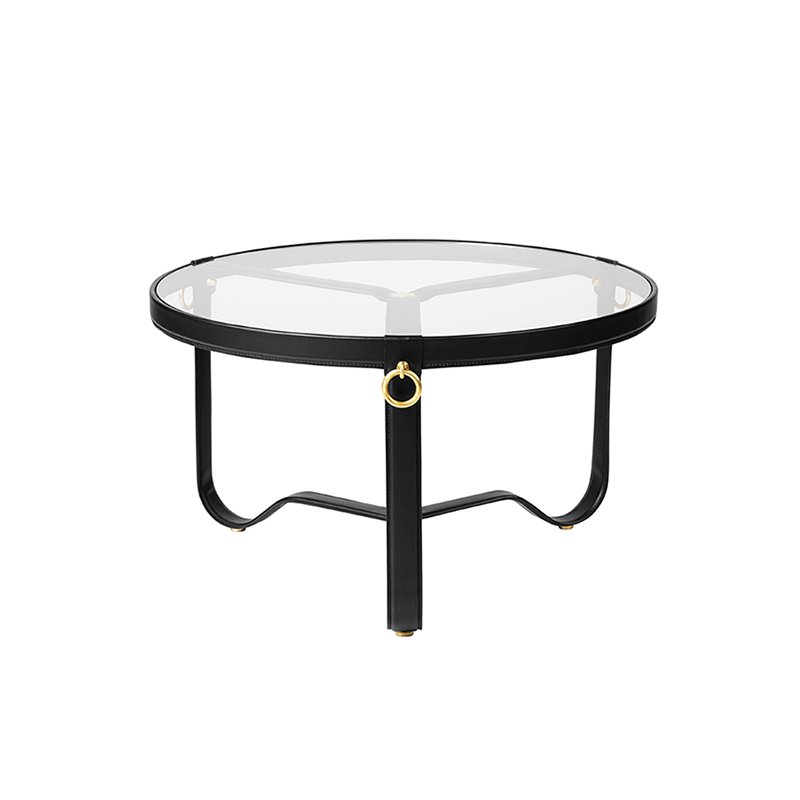 La table basse Adnet a été conçue à l'origine par le moderniste français Jacques Adnet dans les années 1950. Adnet a toujours été en avance sur les tendances contemporaines et est devenu célèbre pour ses designs avant-gardistes et sa combinaison inhabituelle de cuir, de métal et de verre. Rééditée par la marque Gubi, l'emblématique table basse Adnet incarne tout ce que l'architecte et décorateur d'intérieur français représente et allie parfaitement son style Art Déco à son fort engagement envers les principes fonctionnalistes. Posé sur trois pieds en métal courbé, se rejoignant élégamment au cœur de la table, le plateau rond en verre est bordé d'une bande de cuir et orné de trois anneaux en laiton doré. Grâce à des matériaux modernes et un superbe savoir-faire artisanal, Adnet de Gubi est une table basse intemporelle qui ajoute une valeur distinctive à tout espace domestique ou professionnel.