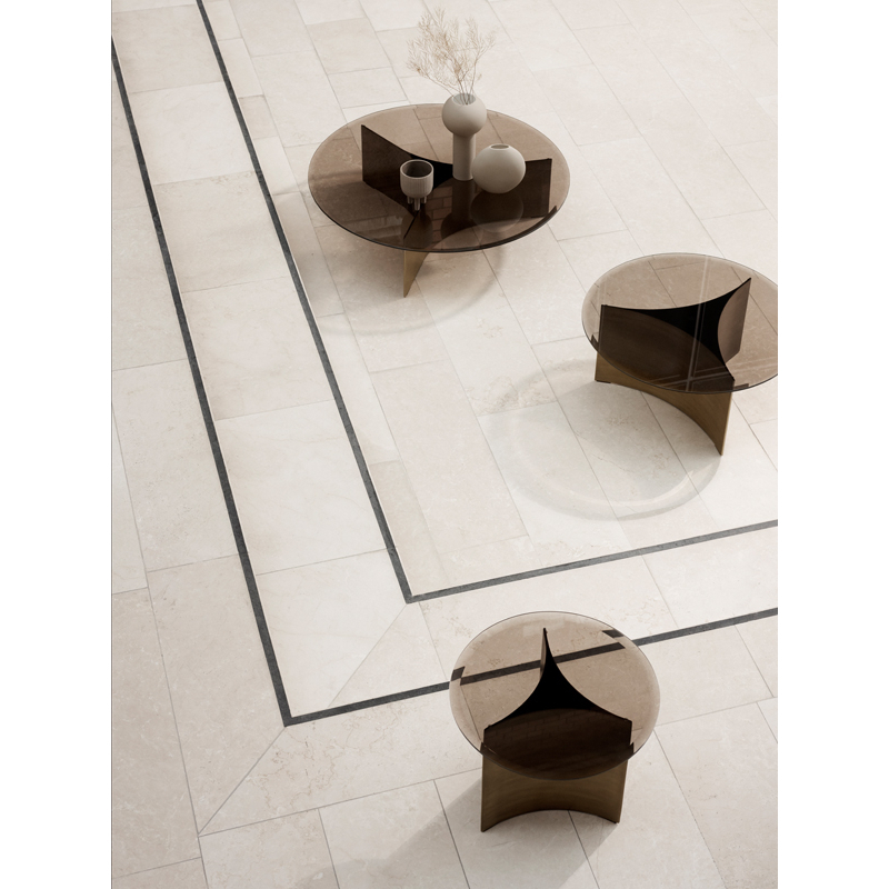 La collection de petites tables Arc se distingue par ses formes géométriques. Le plateau rond en verre fumé laisse voir la base très élégante en acier laitonné. Avec sa silhouette sculpturale et ses finitions raffinées, la table basse Arc de Wendelbo apporte une sensation presque magique dans les intérieurs. Les trois tailles disponibles peuvent être utilisées seules ou en composition de plusieurs éléments.