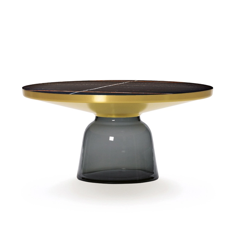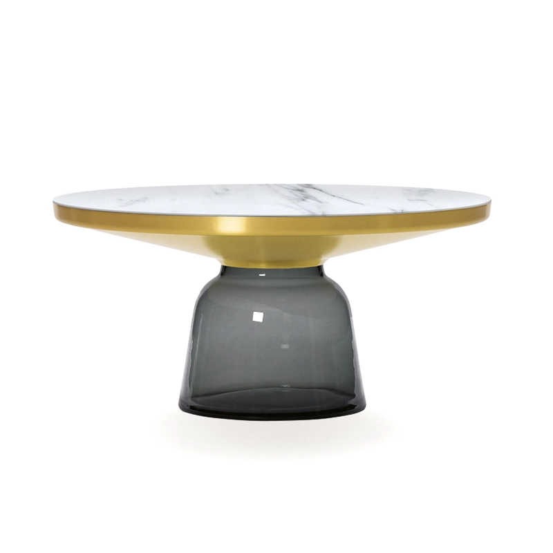 Désormais disponible avec un plateau en marbre, la collection Bell Table de Sebastian Herkner bouleverse l'usage habituel des matériaux en associant le verre, matériau léger et fragile utilisé pour la base, et un plateau réalisé en métal, qui semble flotter au-dessus. Le piétement en verre teinté est soufflé de façon traditionnelle dans un moule en bois. Avec sa présence sculpturale, il contraste avec le cadre en laiton tout en formant une unité harmonieuse rappelant les courbes d'une cloche. Grâce à ses surfaces réfléchissantes et ses matériaux opposés, la Bell Table ajoute une touche raffinée et délicate dans le salon. Elle célèbre la beauté des matériaux avec leurs couleurs et leurs formes, associées aux qualités d'un travail artisanal rigoureux. La table basse design Bell Coffee et la table d'appoint Bell Side sont des pièces uniques et fragiles, chacune étant réalisée intégralement à la main et éditée par Classicon.