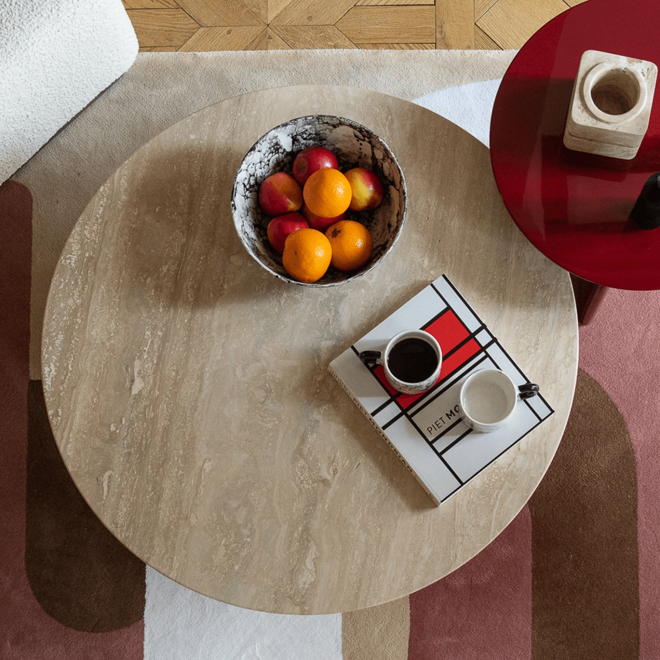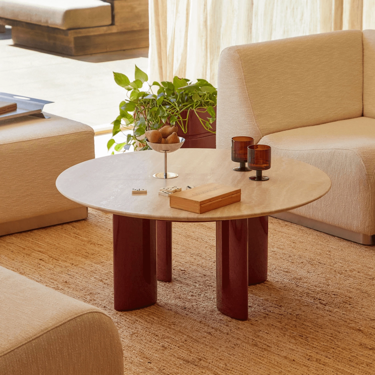 Table basse CARLOTTA Travertin / Bordeaux THE SOCIALITE FAMILY