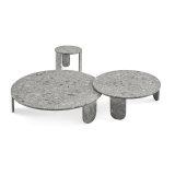 La sublime table basse Clemo de Massimo Castagna pour Gallotti&Radice se décline en deux tailles. Elle est disponible en Ceppo di Grè brossé avec détails en métal bruni à la main, mais également en marbre Calacatta Vagli Oro poli naturel, ou marbre Bianco Carrara poli naturel. Seule ou en compositions de différentes tailles, la table basse Clemo est parfaite pour un salon contemporain.