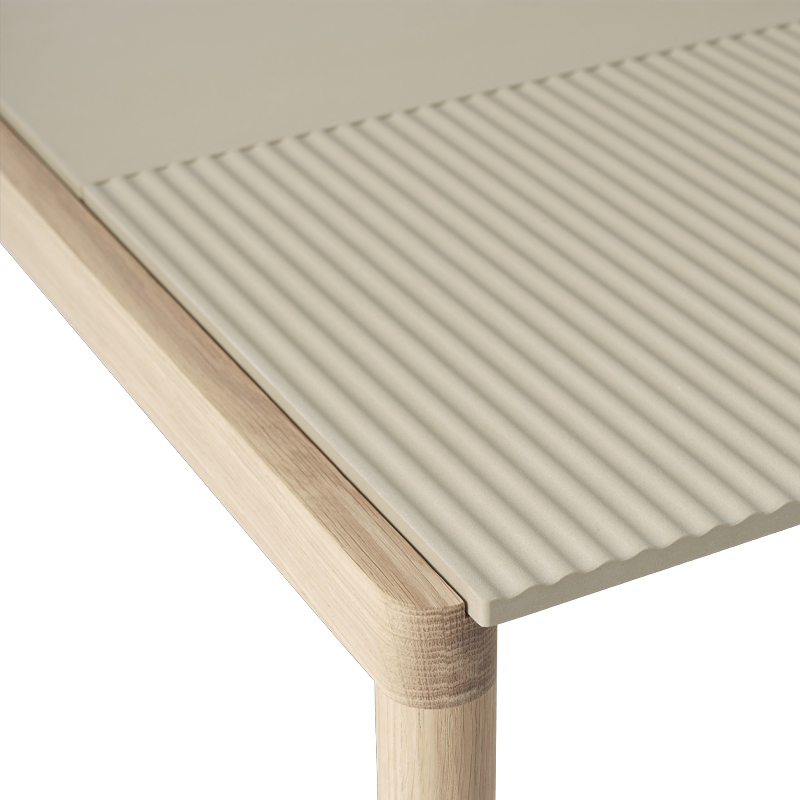 Inspirée de la traditionnelle table en carreaux de céramique, la table basse Couple de Muuto est une fusion raffinée de matériaux. Le piètement en chêne massif certifié FSC sont surmontés de superbes plateaux en grès de cérame, assurant à la fois esthétisme et qualité.  La table basse Couple est constituée de grands plateaux rectangulaires disponibles en deux finitions différentes : lisses ou ondulés. L’assemblage des plateaux de la table basse Couple de Muuto permet un jeu de textures, alternant surfaces lisses et surfaces sculptées par les ondulations qui forment de légers reliefs, traçant des lignes fortes et sculpturales. Choisissez votre table basse Couple parmi 36 variantes préétablies couvrant trois tailles et finitions différentes. Les mots du designer Sylvain Willenz : "La table basse Couple est née de mes recherches sur cette pièce de mobilier traditionnelle et essentielle. Je voulais proposer une vision nouvelle et subtile de ces matériaux et de cette typologie. J'étais inspiré par la matérialité de la céramique comme la brique et la terre cuite, constatant qu’une belle synergie s'opère quand elle est combinée avec du bois. J'ai toujours été attiré par la texture et je voulais un design au caractère intrinsèquement tactile, produit par le toucher granuleux de la surface des carreaux de céramique. Le design des tables Couple permet de choisir et combinez des carreaux lisses ou ondulés. Grâce à ses matériaux, ses finitions et ses détails de conception raffinés, la table basse Couple fusionne subtilement un meuble familier avec des fonctionnalités avant-gardistes."