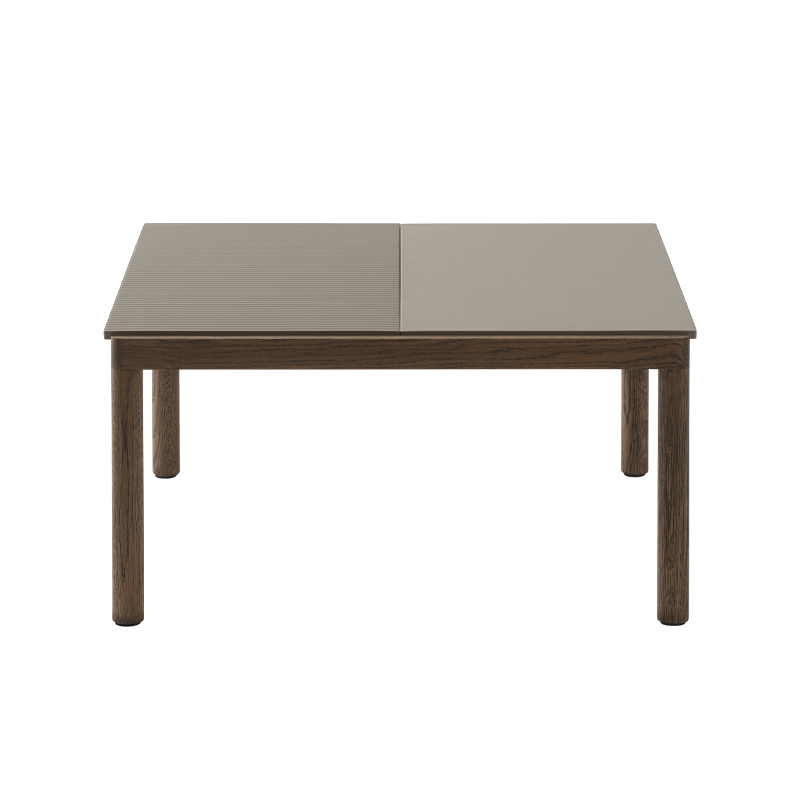 table basse Couple de Muuto permet un jeu de textures, alternant surfaces lisses et surfaces sculptées par les ondulations qui forment de légers reliefs, traçant des lignes fortes et sculpturales.