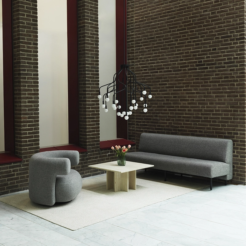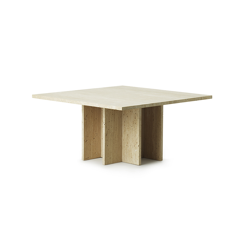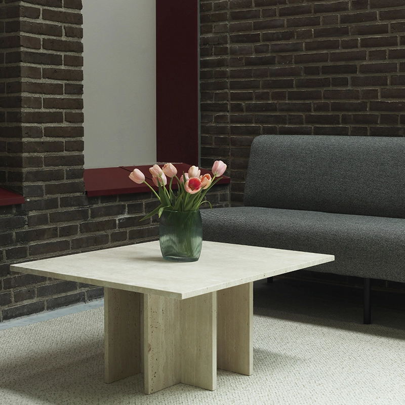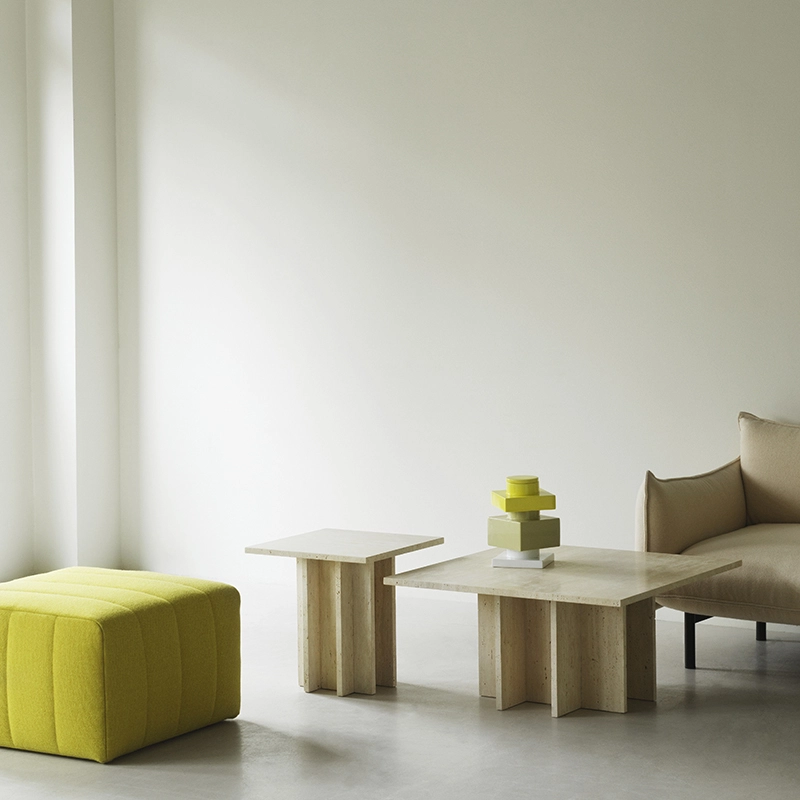 Avec Edge, Normann Copenhagen édite une table basse à l’allure minimaliste, mettant en valeur le matériau unique : le travertin. Ce matériau original et intemporel se caractérise par une structure particulière et des motifs uniques. Afin d’éviter tout gaspillage inutile, Edge a été conçue pour mettre à profit la méthode d’extraction du matériau. Le travertin est extrait d’une carrière, puis taillé en dalles de dimensions variées. La table basse Edge est exclusivement composée de dalles carrées de travertin de différentes tailles, assemblées en une construction géométrique simple. Ainsi, chaque dalle est utilisée de manière à tirer le meilleur parti du matériau. La table basse Edge Normann Copenhagen se distingue par ses lignes minimalistes et sobres, qui sont adoucies par les motifs uniques et l’aspect organique de son matériau. Ce design sobre trouvera sa place dans tous les styles d’intérieurs.