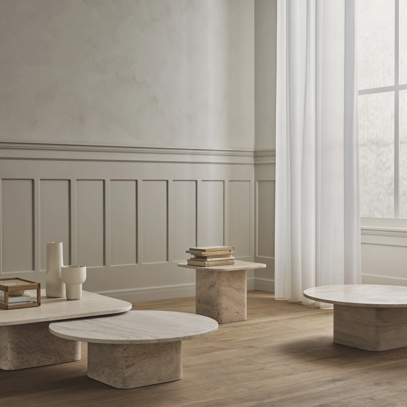 Table basse EIDA 55x55 Travertin Sable BOLIA