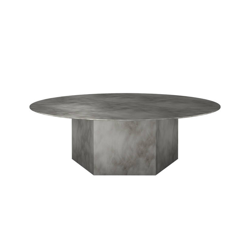 Dessinée par le célèbre duo GamFratesi pour Gubi, la table Epic Steel est une pièce unique dotée d'une expression poétique. Conçue d'abord en Italie en pierre de travertin, cette série de tables a été inspirée par les colonnes grecques et l'architecture romane. Avec cette nouvelle version, GamFratesi utilise pour la première fois des plaques d'acier, qui sont galvanisées, laquées et enfin traitées avec une finition à la main, afin de créer une surface unique pour chaque table. Pièce sculpturale au caractère fort et déclinée dans plusieurs tailles et finitions, la table basse Epic Steel s'impose dans tous les intérieurs.