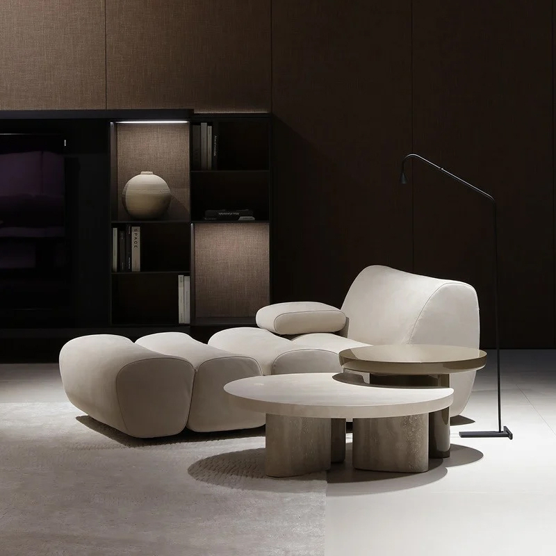 Les tables basses Ernest de Poliform reprennent et élargissent le thème de la modularité de la collection homonyme de canapés. Comme un puzzle, les tables basses peuvent être combinées entre elles au centre de la pièce pour créer des figures qui rendent l’espace living dynamique, ou utilisées individuellement à côté du canapé Ernest.