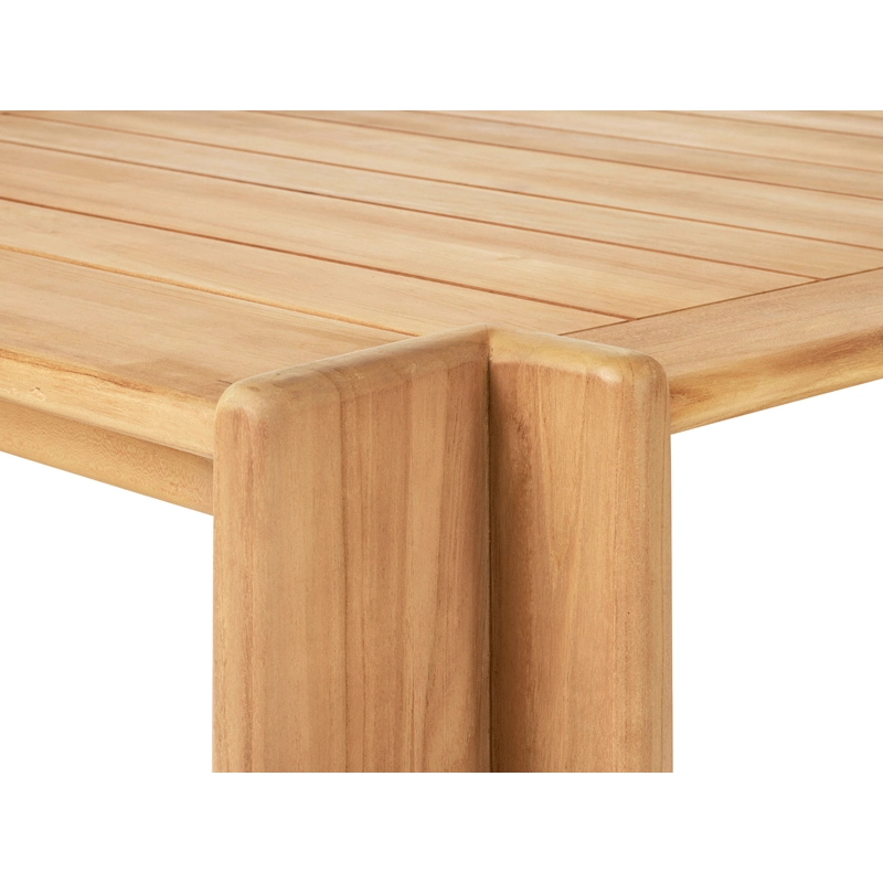 Avec Atmosfera, le studio de design de Gubi a créé une collection élégante pour l’extérieur, comprenant une table de de repas déclinée dans deux dimensions et une table basse. La collection a été conçue pour apporter une ambiance unique lors de diners ou de moments de relaxation en extérieur. Les tables Atmosfera représentent parfaitement l’attention aux détails et l’élégance calme qui caractérisent Gubi. L’esthétique simple des tables Atmosfera maintient un équilibre discret avec un clin d’œil aux références classiques, sans être trop formelle. Les plateaux sont réalisés à partir de lattes de teck de première qualité, entourés d’un cadre réalisé dans le même matériau, ce qui amène un effet minimaliste. Les pieds sont formés à partir de deux lattes verticales, créant une forme de L inversé à chaque coin. Faisant référence au design maritime et architectural, les pieds procurent à la fois un support structurel et un intérêt visuel, donnant à l’ensemble une certaine légèreté. Chaque pied dépasse légèrement au-dessus de la surface de la table, finissant par un détail arrondi qui contraste avec les lignes géométriques de la structure.