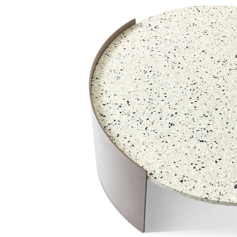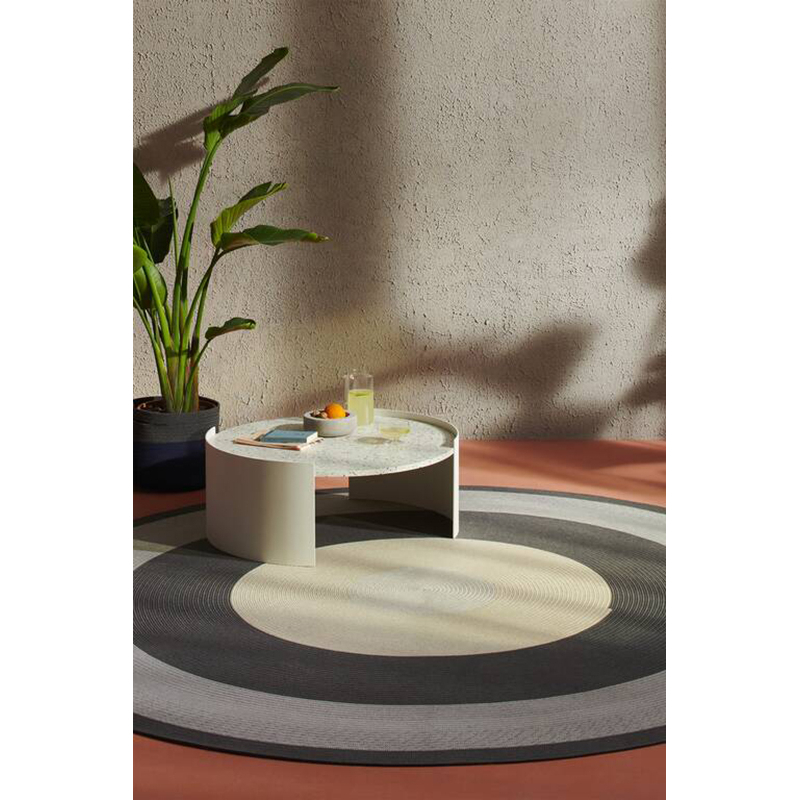 tables basses Bowy pour l'extérieur sont disponibles en deux tailles différentes et sont caractérisées par leur structure en poudre d'aluminium peinte dans des finitions texturées taupe et ivoire. Elles sont dotées d'un plateau en fibres de verre recyclées RFM, disponible en blanc et rouge mais aussi en blanc et gris. Les