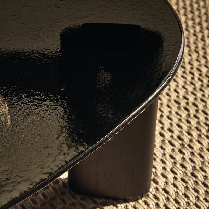 La collection d’assises Ketch de Poliform est complétée par les tables basses, qui reprennent les lignes solides et robustes. Les pieds sont en massif Iroko, tandis que le plateau est disponible en deux versions : dans le même matériau, à lattes, ou en verre obtenu avec une technique artisanale de verre fondu qui utilise du sable pour créer une texture particulière à la fois à la vue et au toucher.